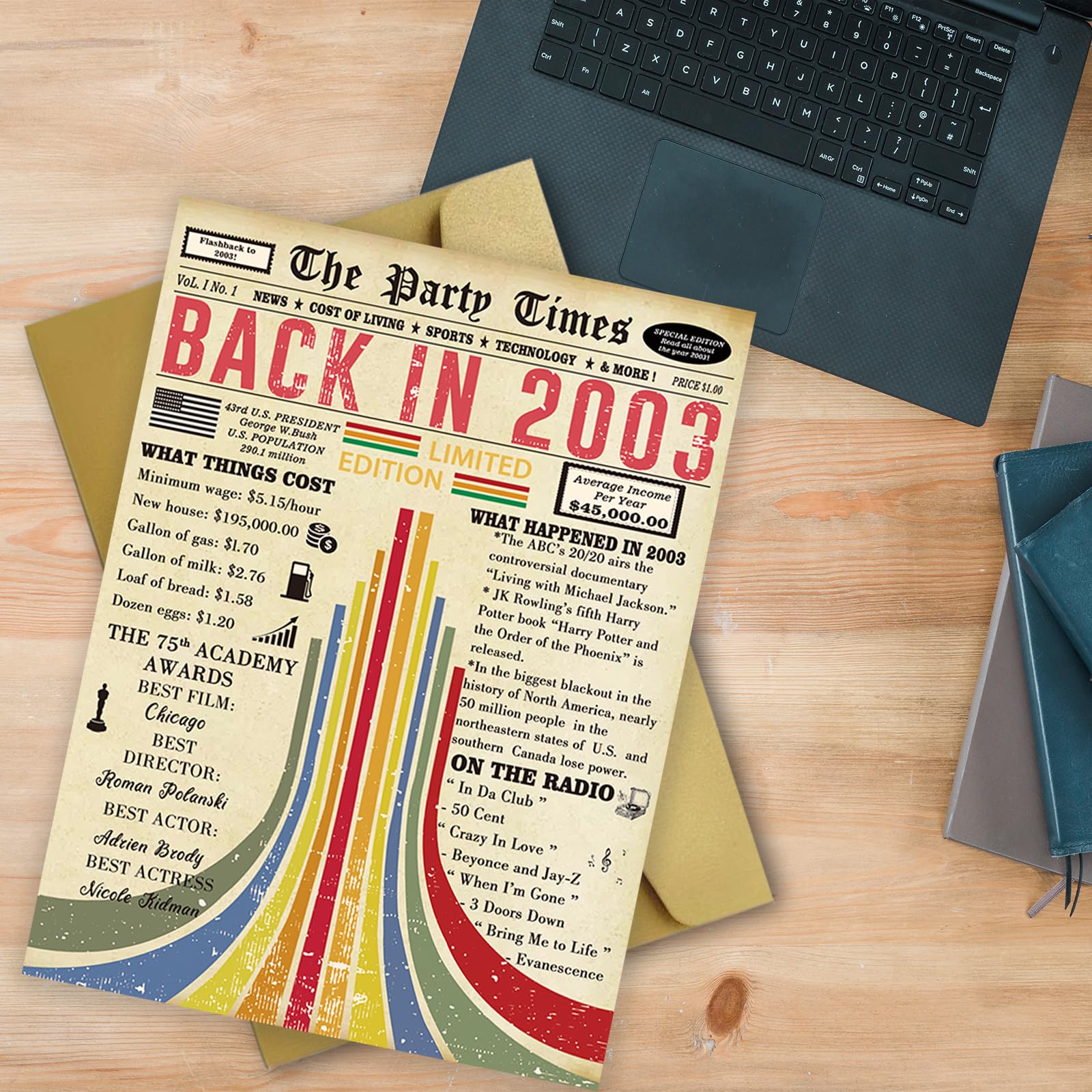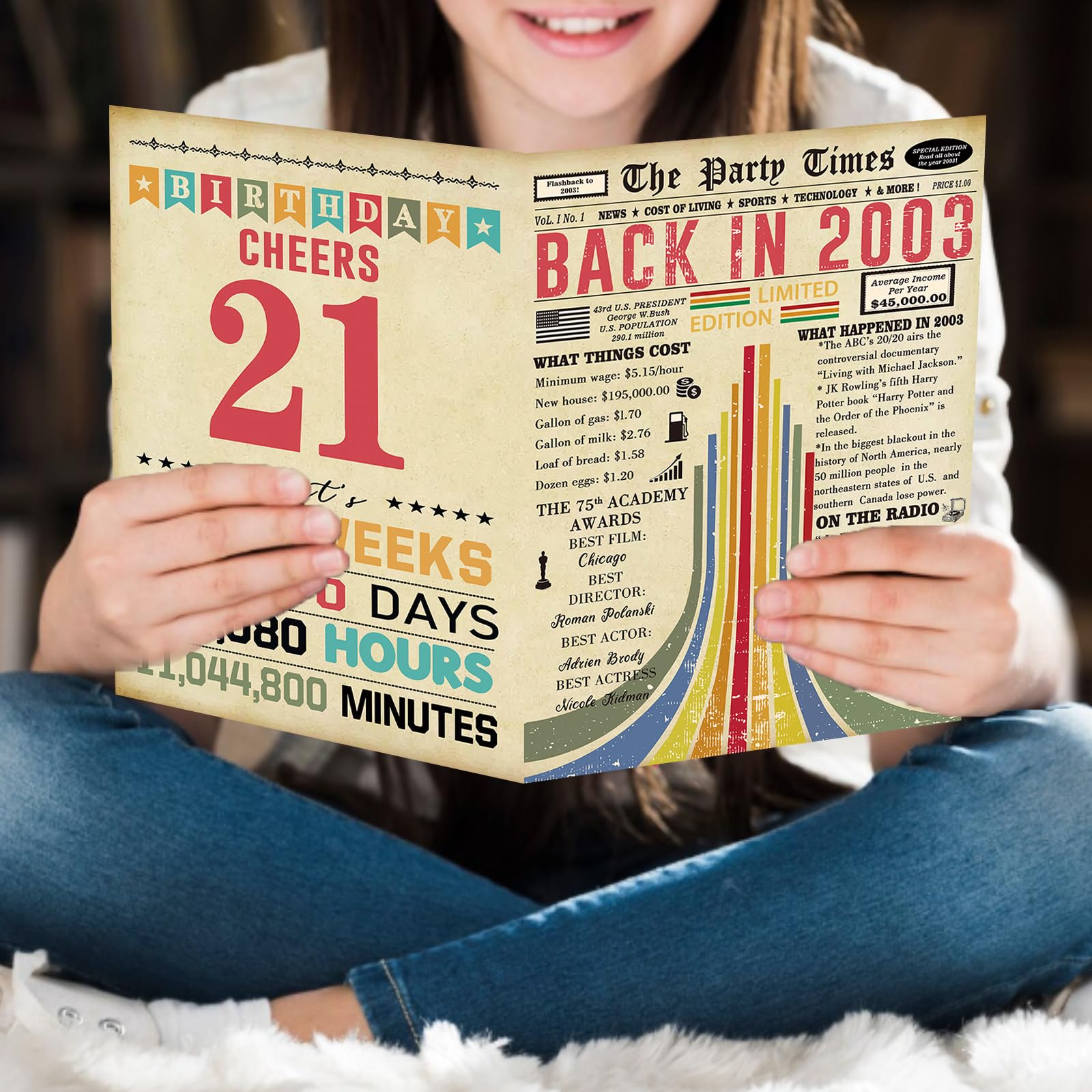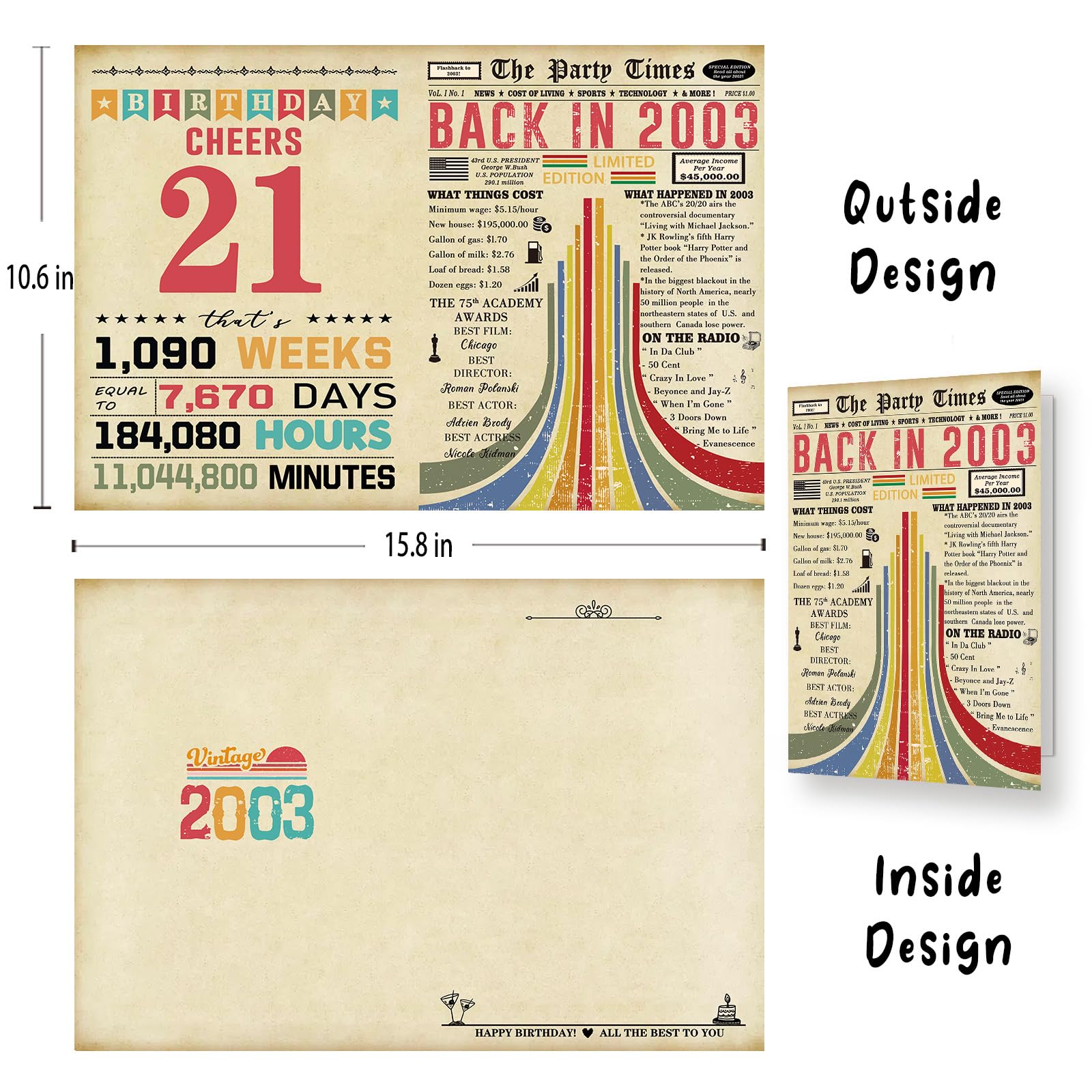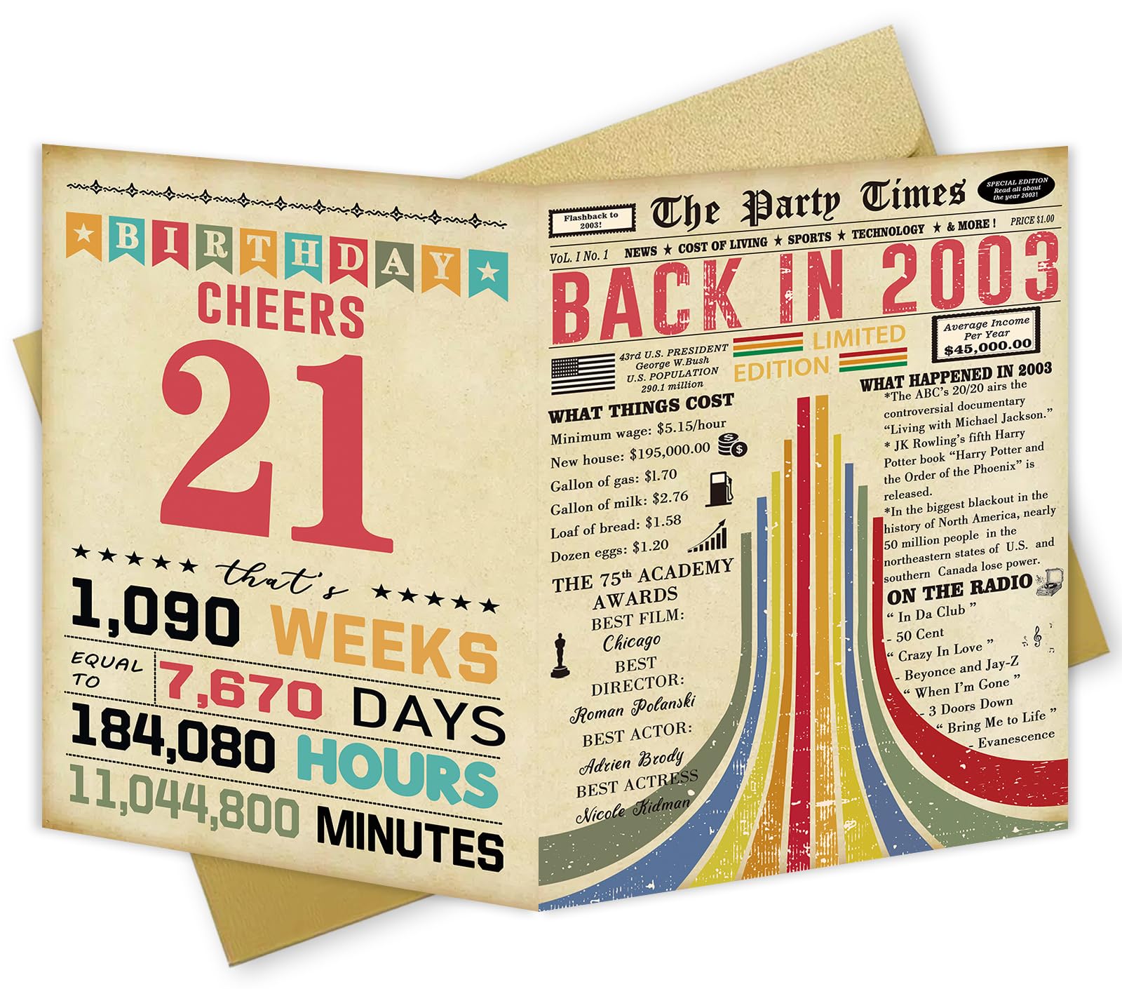 PERFECT GIFT IDEA -Find interesting 21th birthday cards for your children. The cards contain some specific events in 2003, which can help you review interesting events with family and friends.