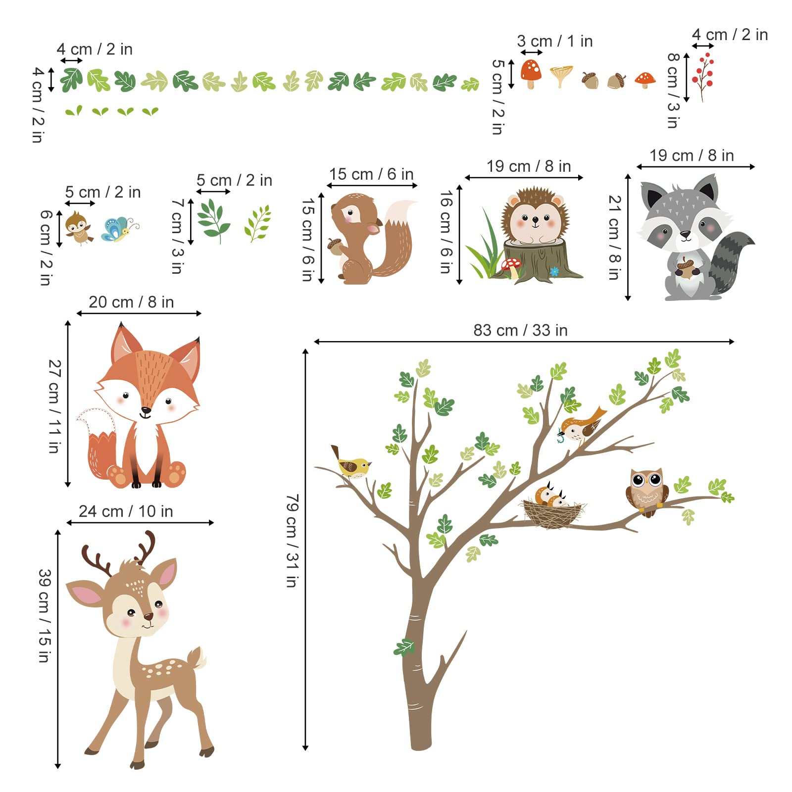 decalmile woodland animals tree wall stickers are perfect to decorate kids room, bedroom, living room, baby nursery and playroom.
