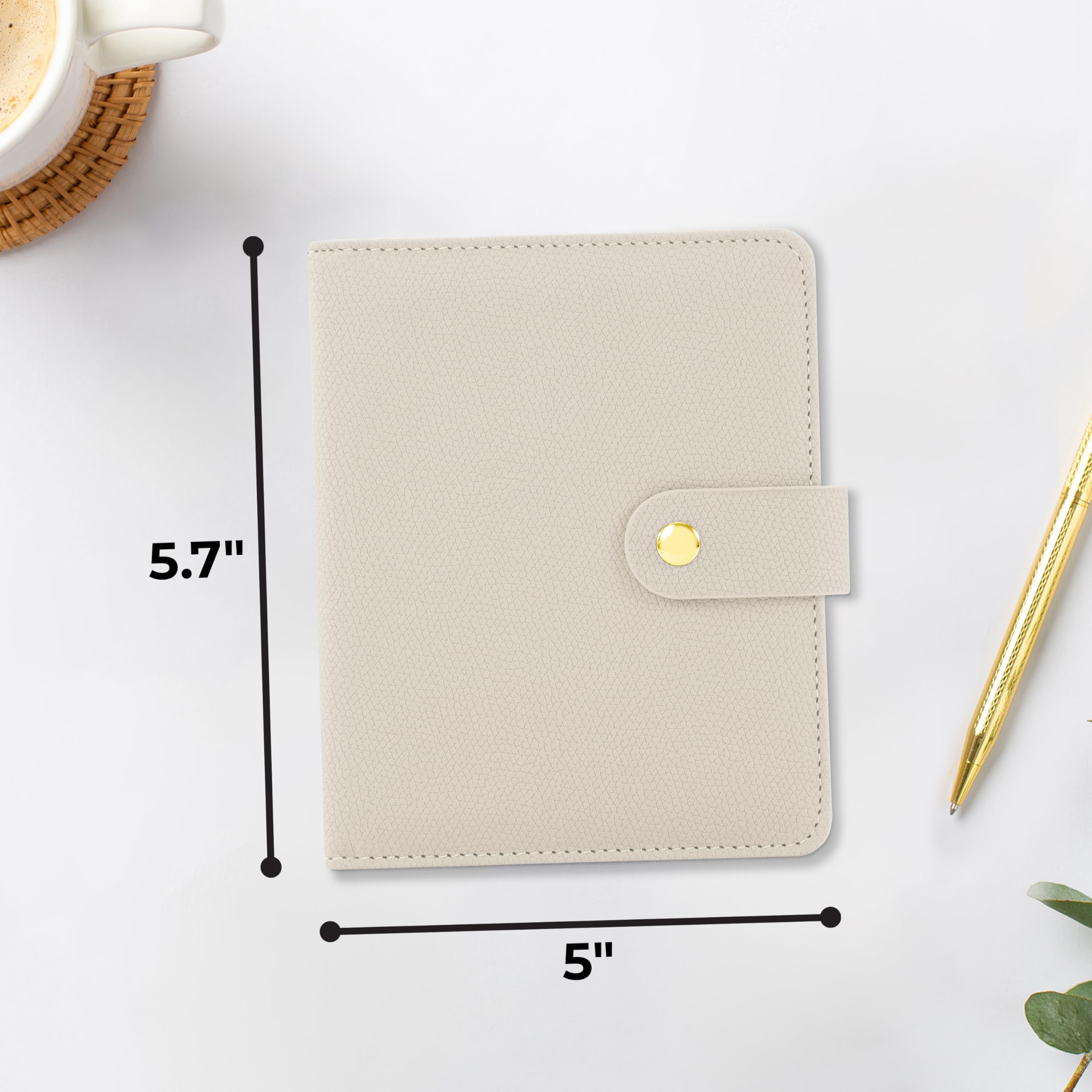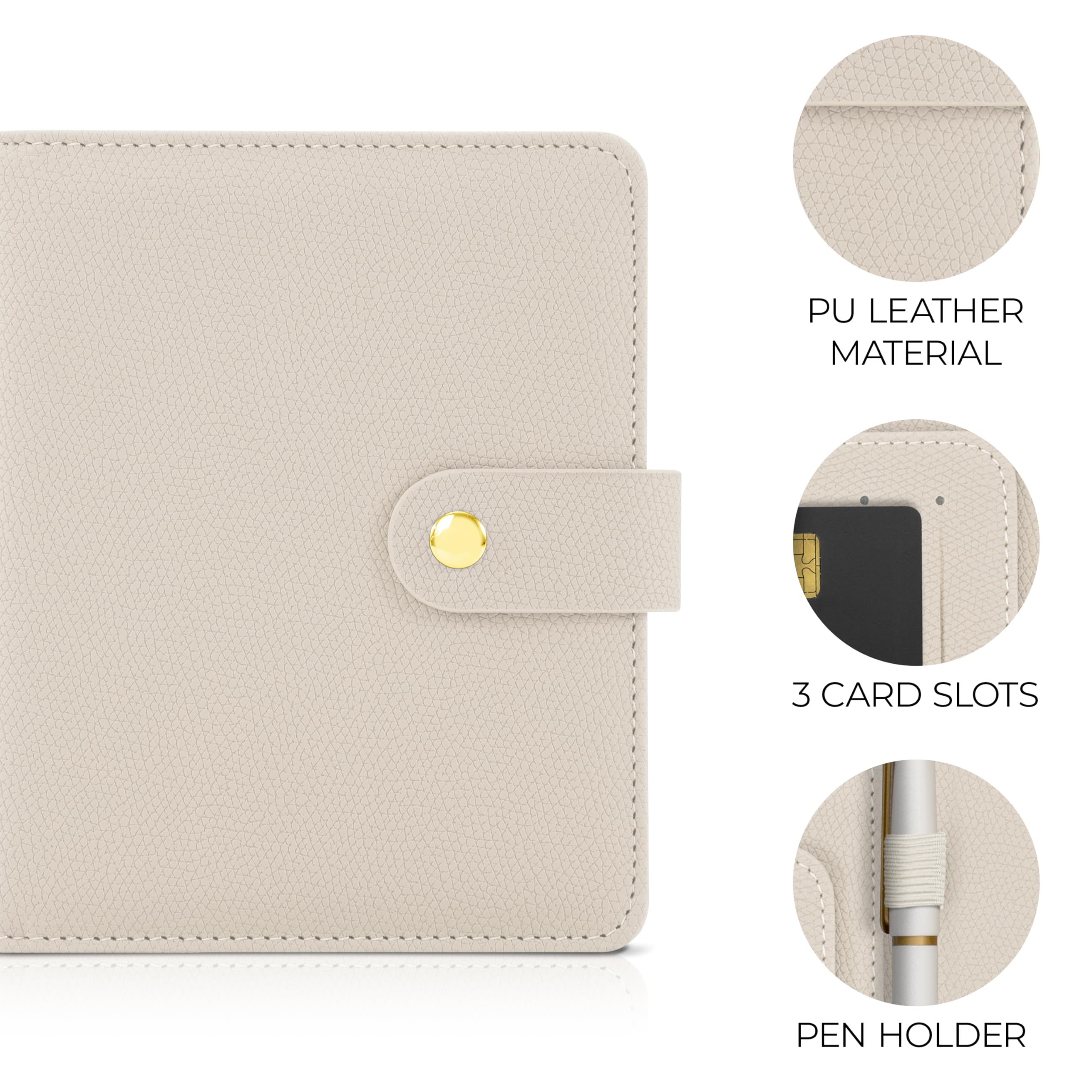 Sophistication in Every Detail: Elevate your travel style with the timeless beige passport book. The elegant metal golden button adds a luxurious touch, turning it into a fashionable accessory - perfect for the stylish, well-organized traveler