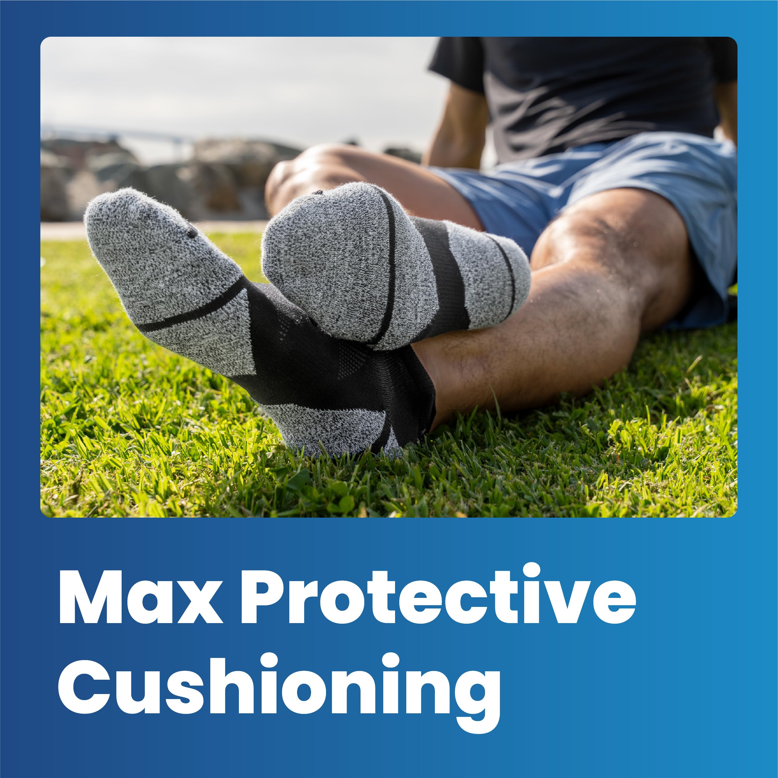 TWO EXTRA FEATURES: seamless toe box minimizes friction, preventing chafing on top of the foot; high heel tab and extra deep heel pocket prevents socks from slipping down into your shoe
