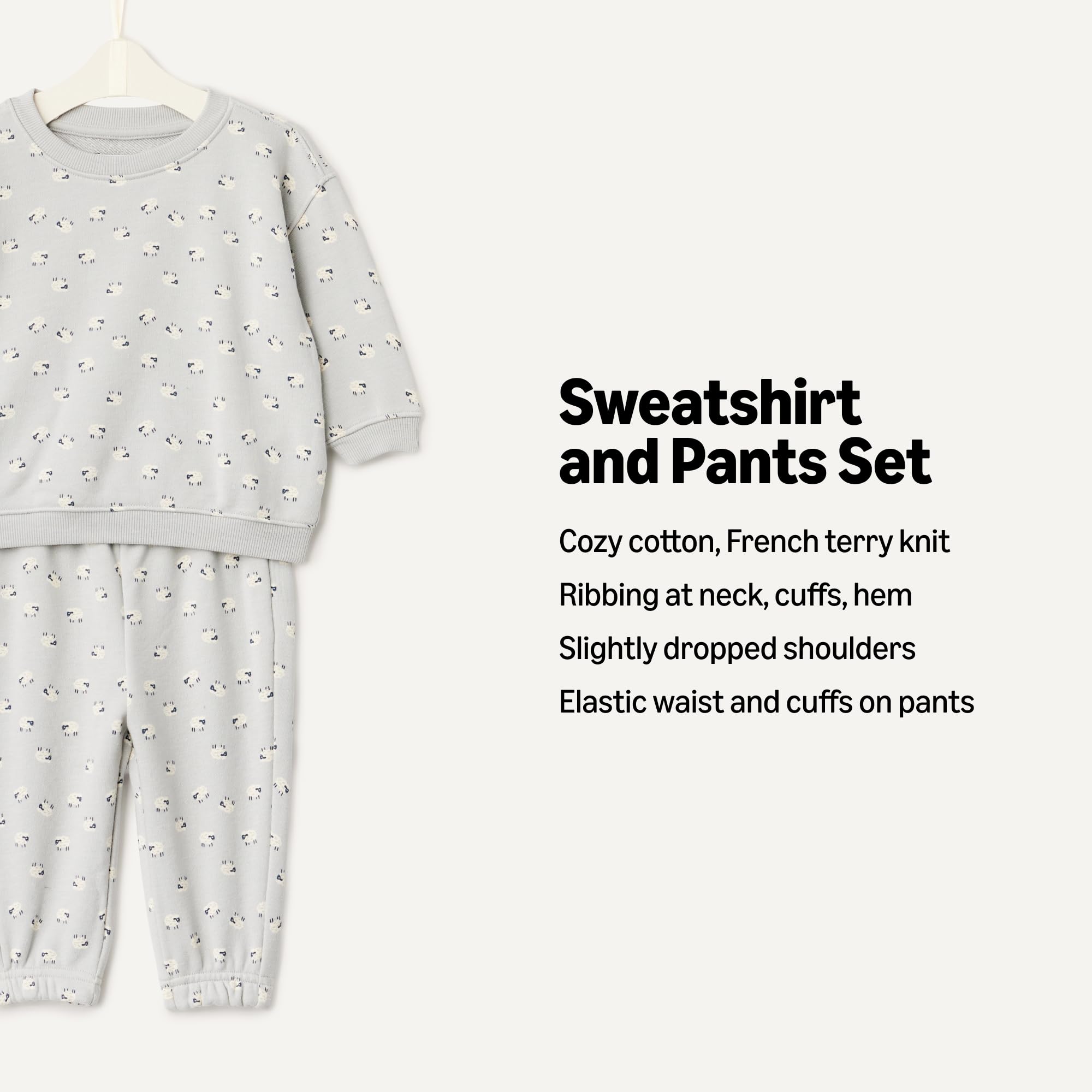 DETAILS: Sweatshirt features slightly dropped shoulder and soft ribbing at neck, cuffs and hem. Pants feature elastic waist and cuffs