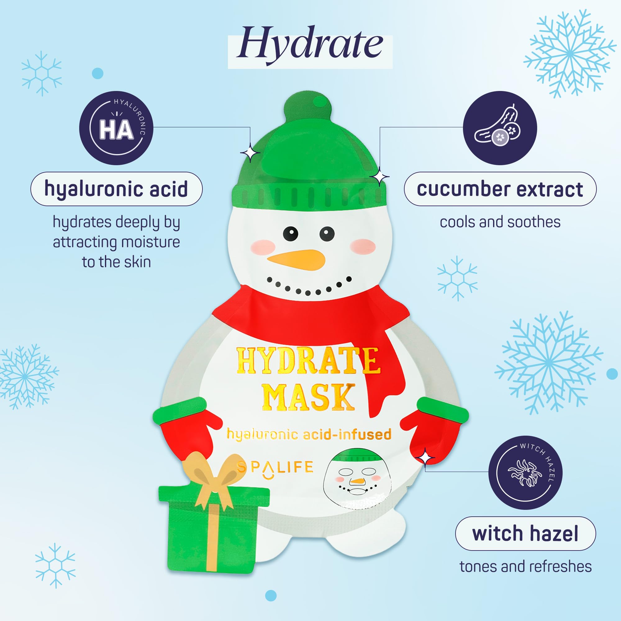HYDRATE AND PLUMP WITH HYALURONIC ACID — Hydrate Snowman gives dry winter skin a well-deserved drink of moisture! Infused with hyaluronic acid, this hydrating face mask helps plump, smooth, and refresh, making it a go-to for skin care Christmas gifts or cozy nights in.
