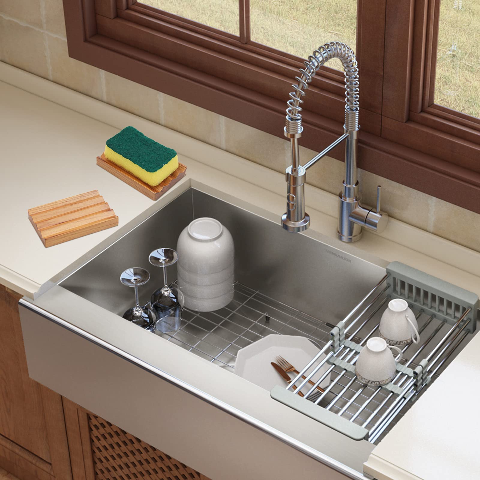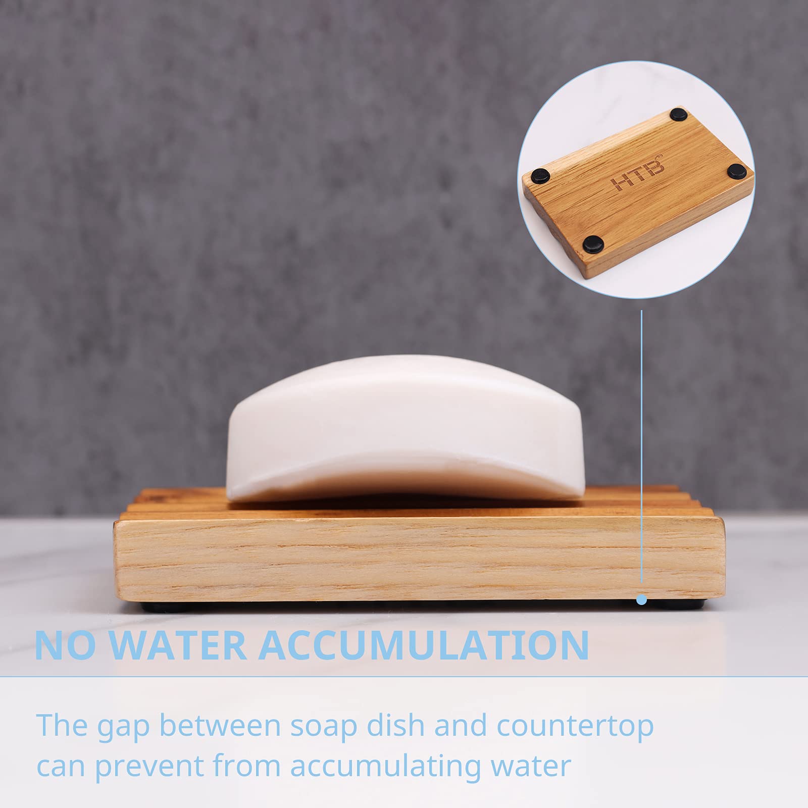 【ELEGANT SOLUTION TO SOAP SCUM: 】Our bathroom soap dishes with wood V grooves, which are designed to temporarily collect water and soap scum instead of running directly to the counter.