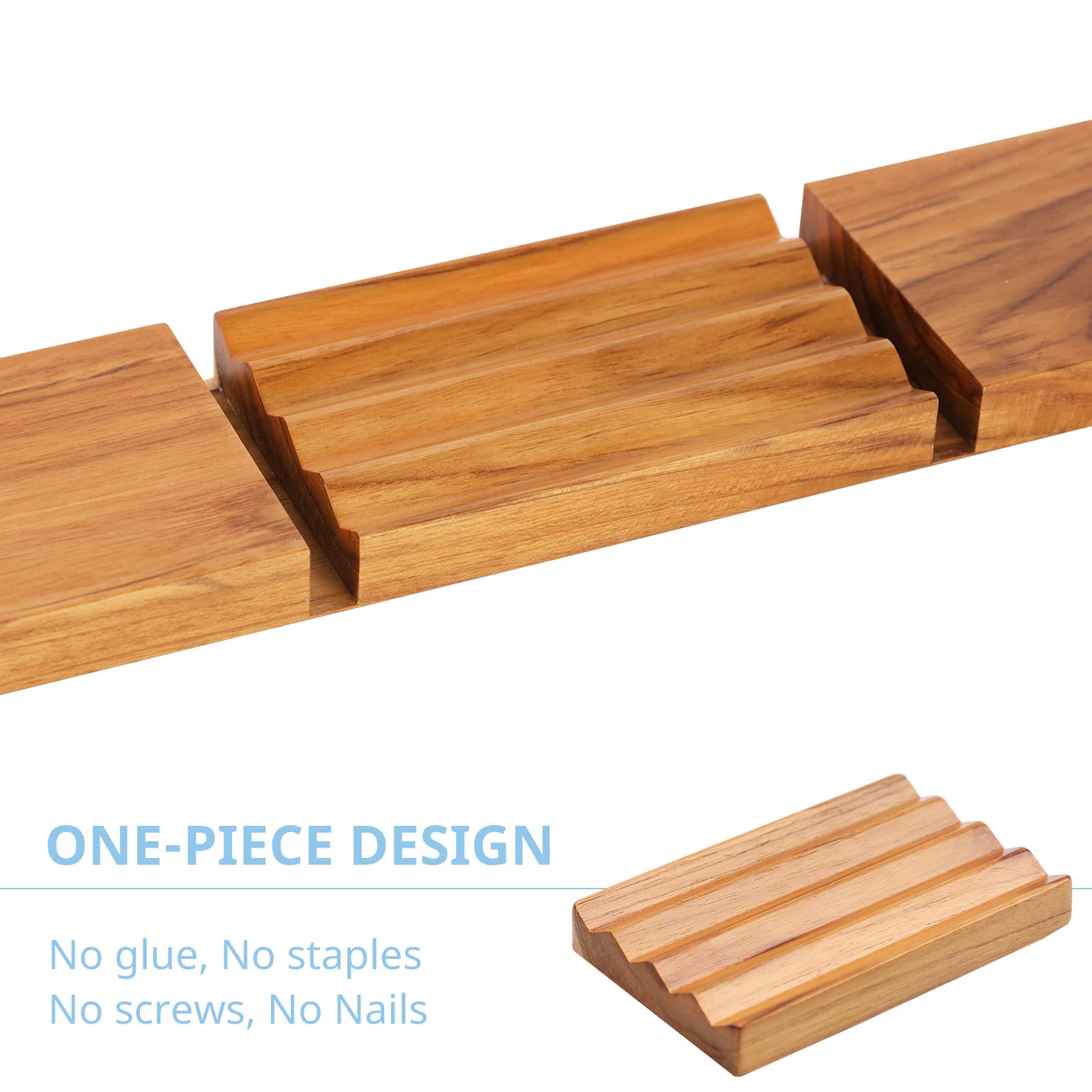 【ONE-PIECE DESIGN: 】Our natural soap savers are made of one solid piece of natural teak wood not easy to deform and crack. Teak is often used for boat building and exterior construction. Each teak soap dish sized 4.9*3.1*0.74 inch / 12.5*8*1.9 cm.