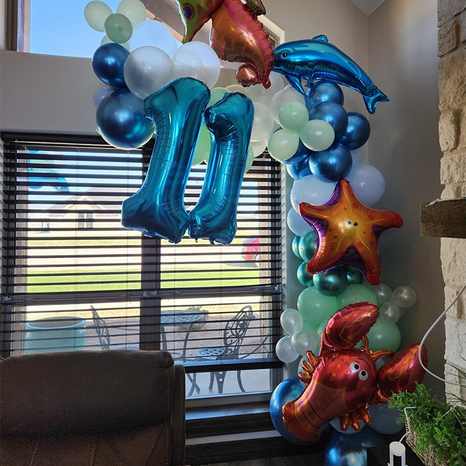 VERSATILE: Create stunning balloon garlands, arches, and more with Isndare ocean theme green blue balloons, take your party decorations to the next level, which can be used in a variety of ways to create stunning party décor, create your desired look, great for kids ocean theme birthday party, baby shower, under the sea party, shark theme party, etc., decorate any party indoor or outdoor
