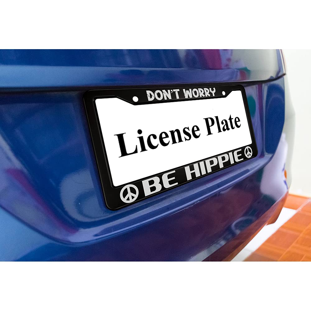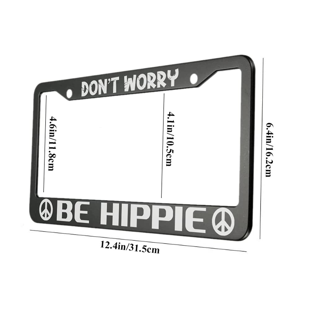 Our Don'T Worry Be Hippie Aluminum Alloy License Plate Frame White Peace Love Logo Applicable to US Standard Car Metal Car Tag Frame(1 PACK) We fab these License plate frames out of an outdoor durable aluminum alloy composite material, to protect the image from fading and protect the image from road debris, extending the life of the graphic Durable aluminum frame with aluminum coating. This license plate holder is the perfect accessory for your vehicle. Please check the product image for frame size. Please measure your license plate to make sure the upper or bottom lip of the frame won't cover the state name. Specifications: Frame size: 12.4" X 6.4" Frame material: thin aluminum sheet metal Package Includes: 1 x License Plate Frame Tips: Sold individually (not a pair). Get one for the front and back of your vehicle. After-sales Service: If you have any questions, please contact us through our shop. We will reply within 24 hours.