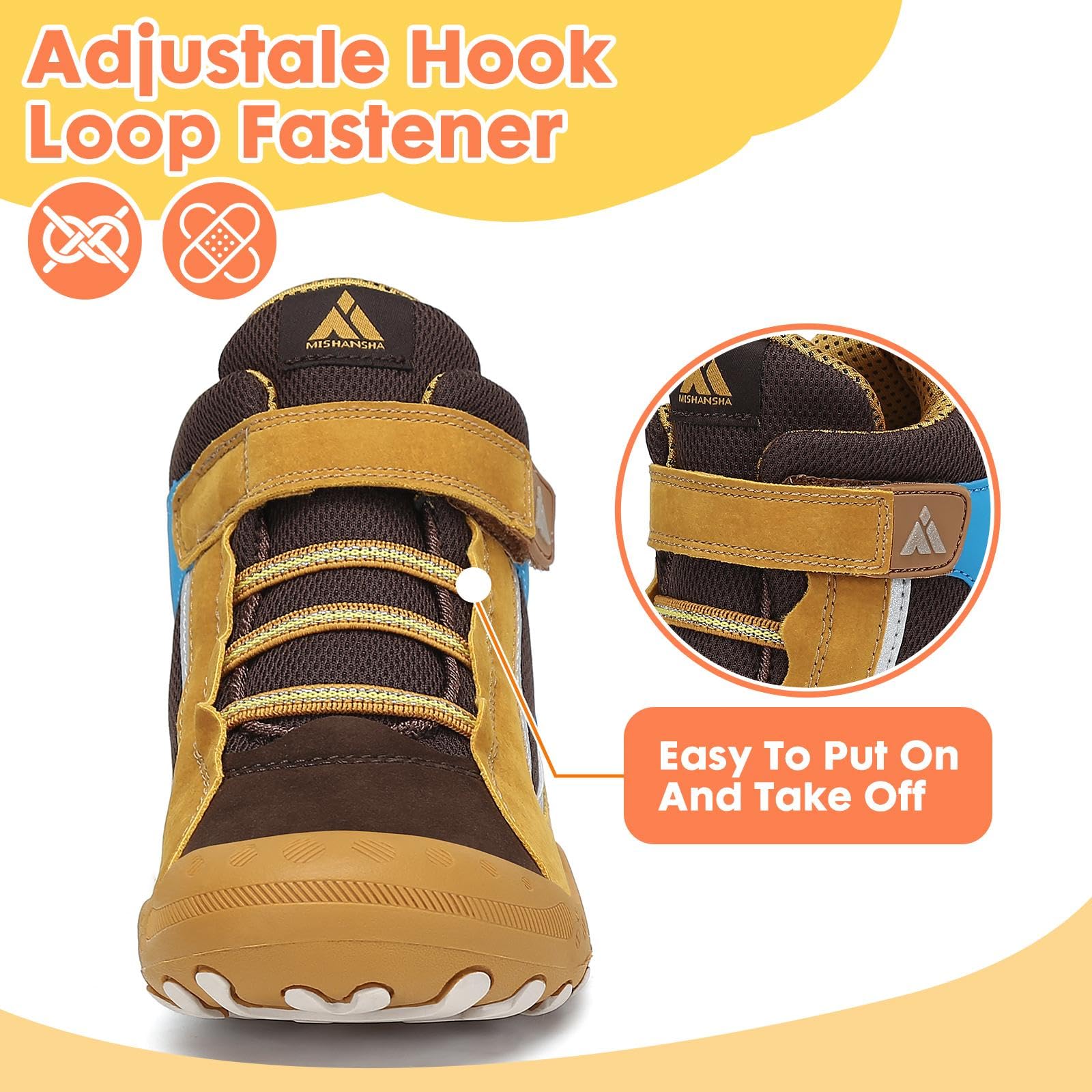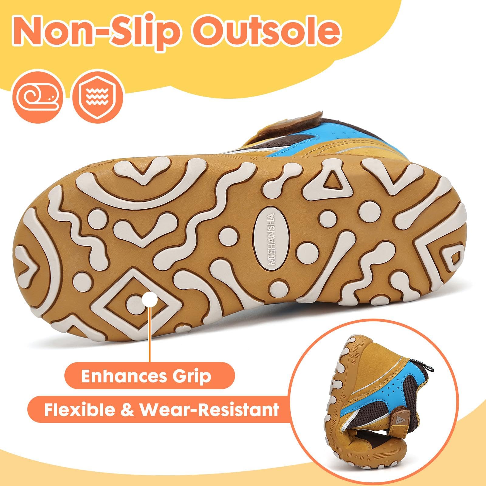 Description Mishansha's design and R&D team has developed a new series of kids fashion hiking boots, they are soft looking and stylish. Its a multifunction outdoor hiking shoes, suitable for boys and girls, which perfect for hiking, trekking trip, mountain climbing, walking, runnig, jogging, casual, school, playing party etc. Main features: Waterproof Vamp:Featured grade leather for water resistant function Protect Structure:Soft TPR toe guard reduce kids hurt from hard object when playing Convenient System:2 Hook-and-Loop closure design for child easy on and off Anti Slip Sole:Full-length TPR sole added extra grip and cushioning for kids We believe Mishansha's newly kids outdoor hiking boot is the ideal choice for you. Thanks for trusting in Mishansha's shoes. At the same time hope that you can give us valuable advice and let us make better.