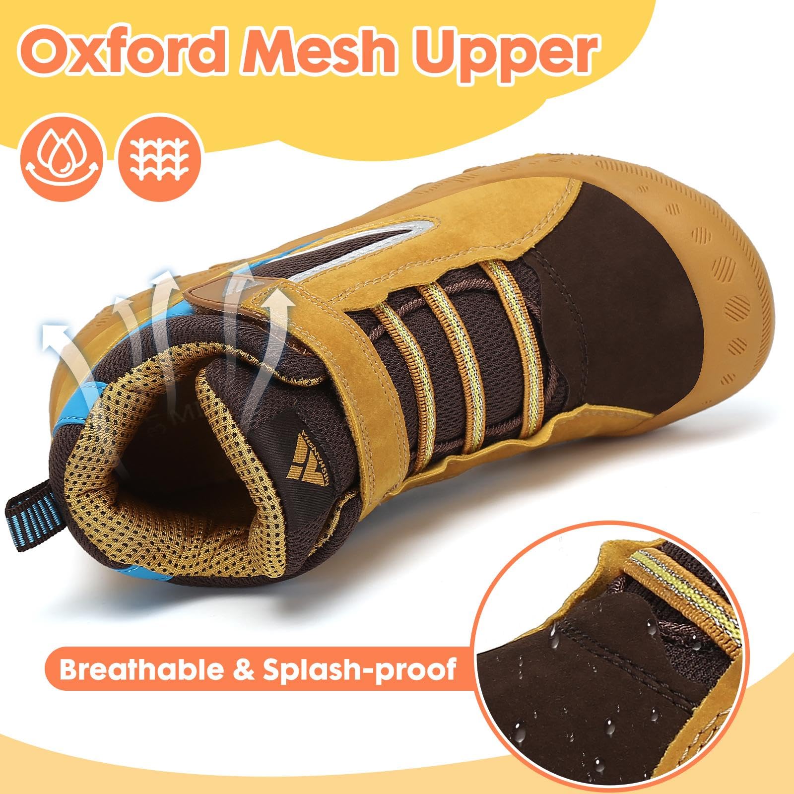 COMFORTABLE UPPER: The Vamp of kids hiking shoes are featured with high-quality PU leather and breathable mesh fabric, which keep kids feet dry and comfortable feeling.