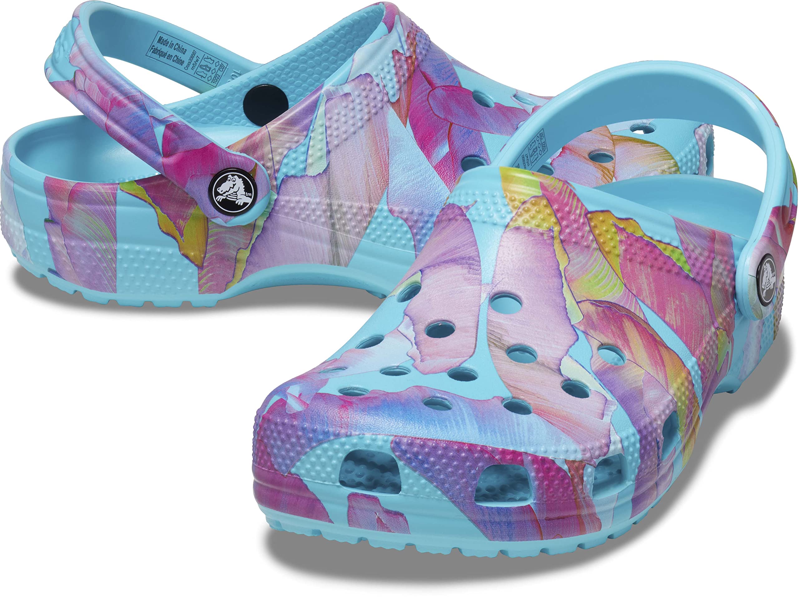 Colorful Crocs for Women and Men: A floral graphic provides extra style to this version of the iconic clog.