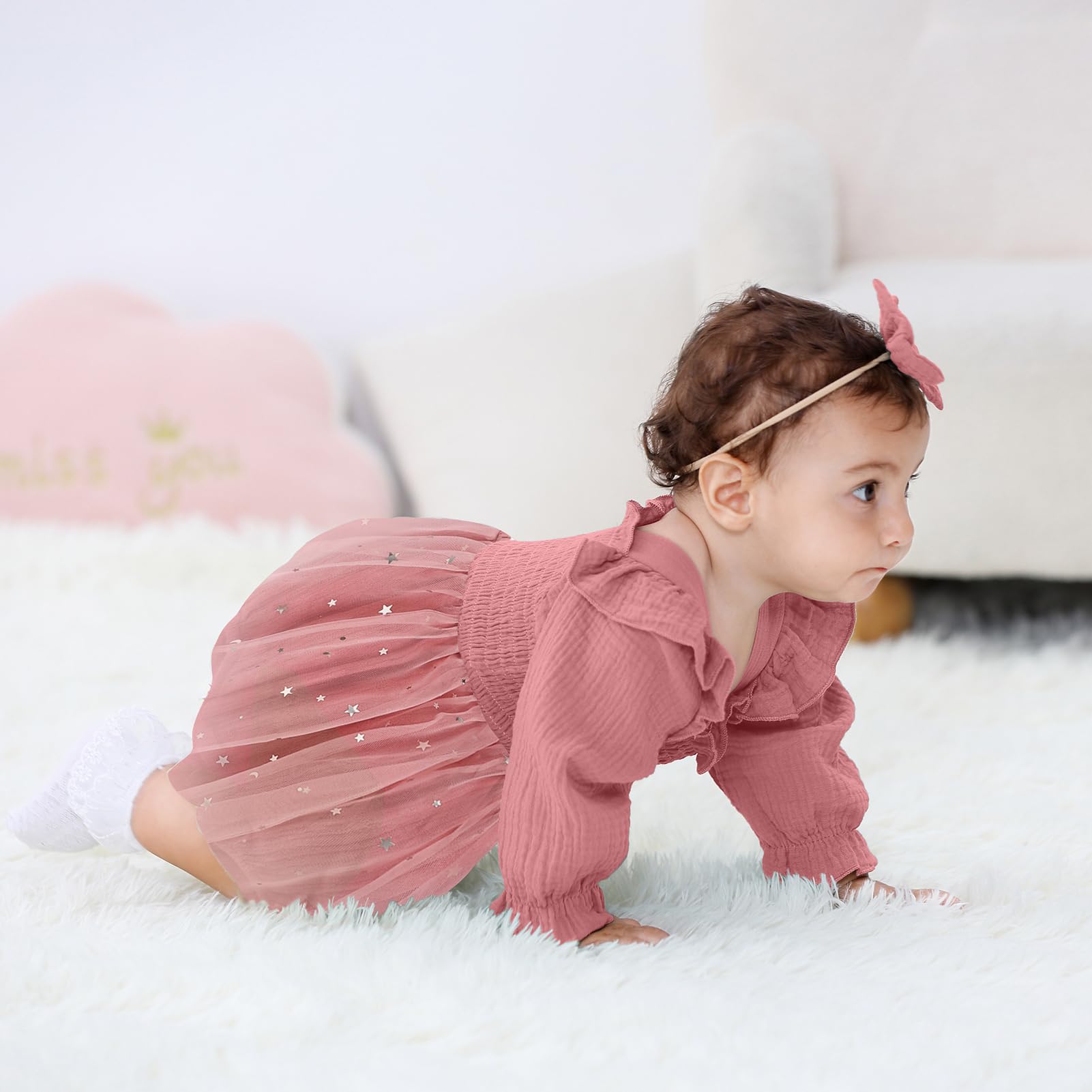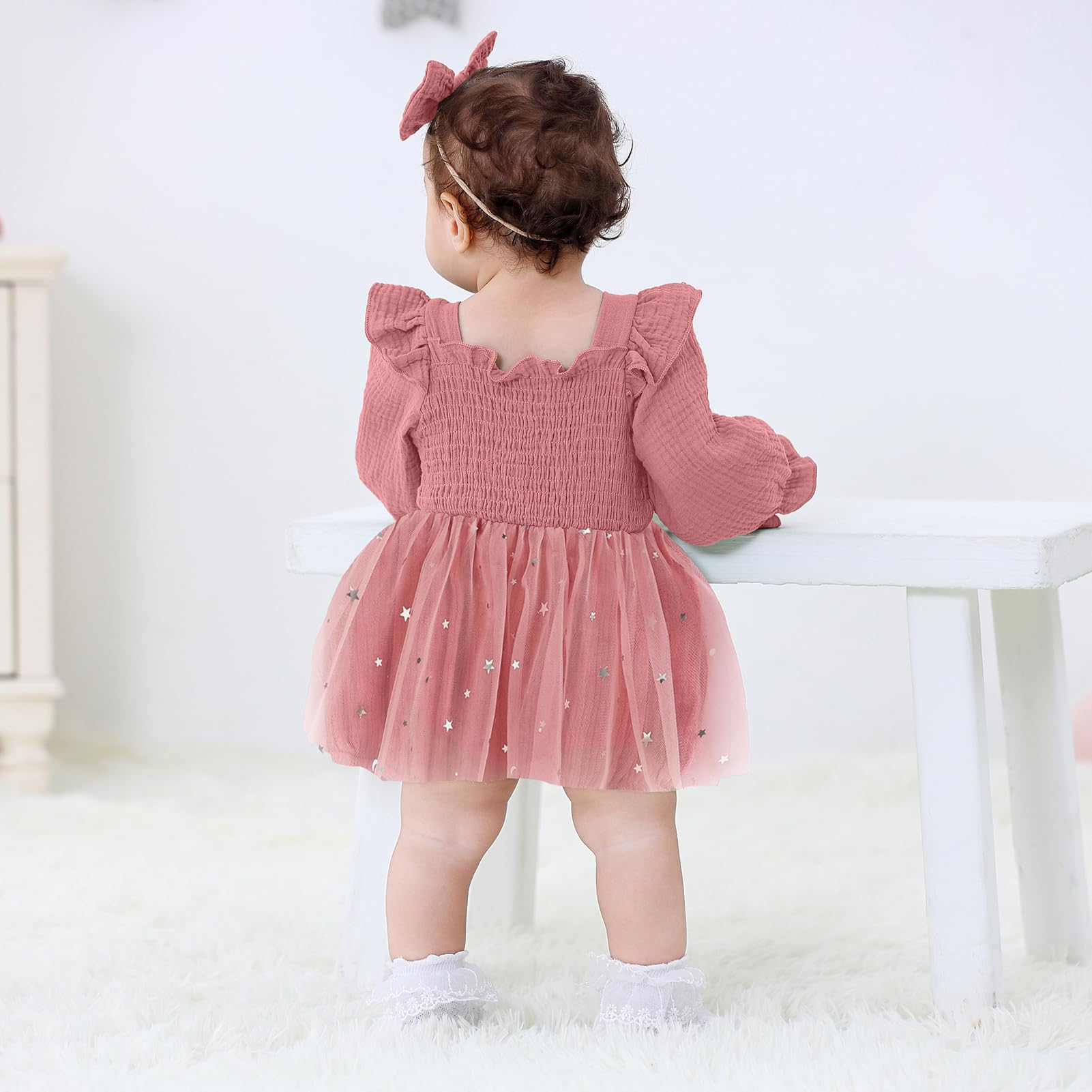 Occassion: Baby girls princess 1st birthday clothes is a best choice for 1st birthday party. Baby rompers girl tutu dress suitable for many occasions, such casual, family parties, one birthday party, baby photo, baby shower gifts, festival, fall/winter daily life etc.