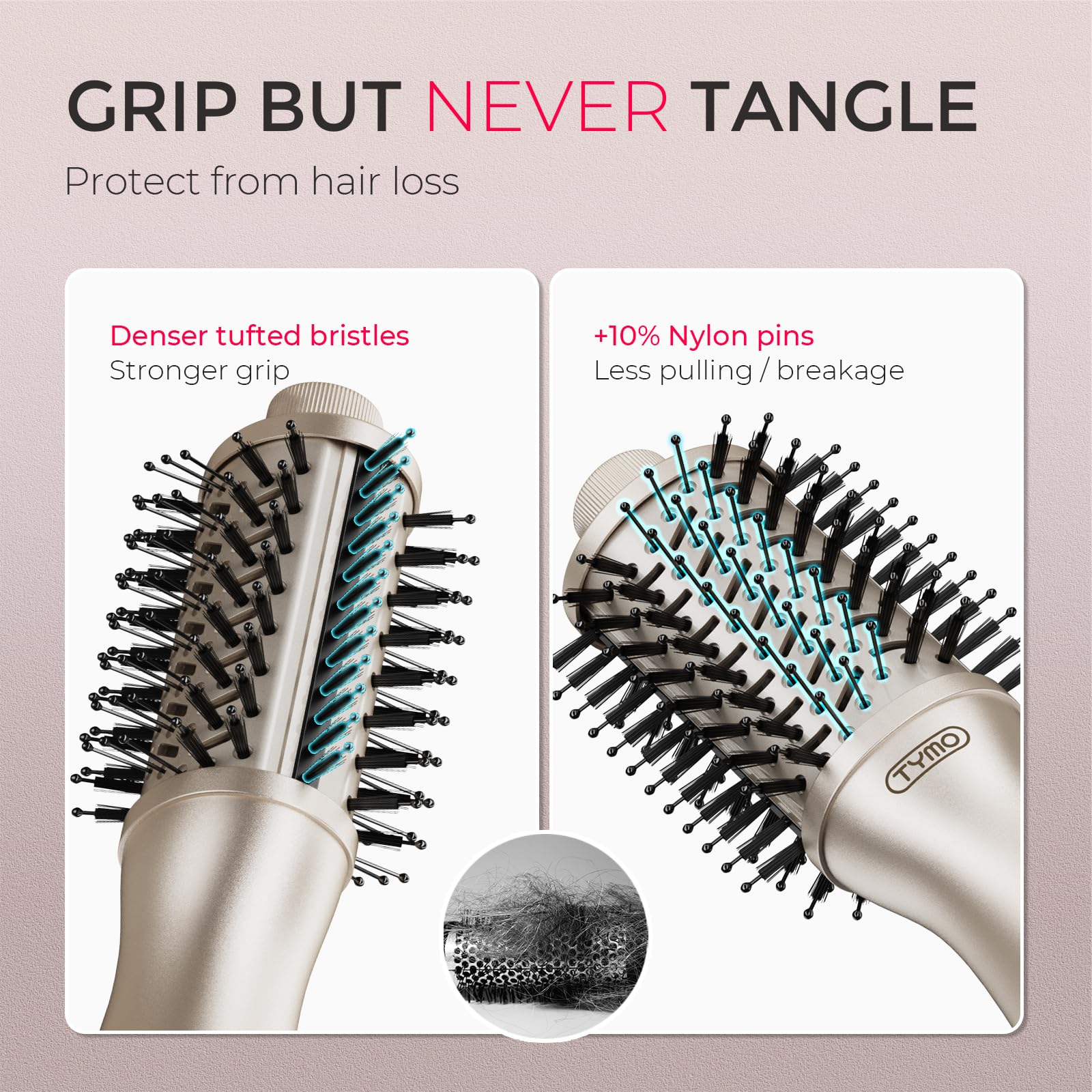 STRONGER GRIP, LESS PULLING - The gentle grip system with 3 specialized bristle types work together to lift and smooth hair without tugging. Fine strands stay protected while thick hair gets maximum control.