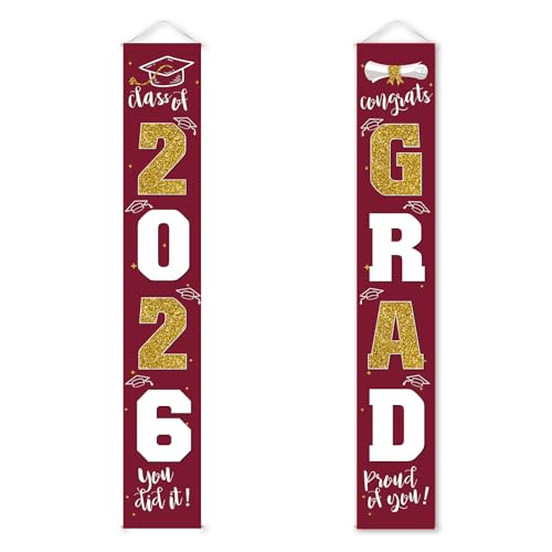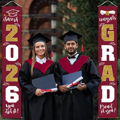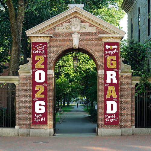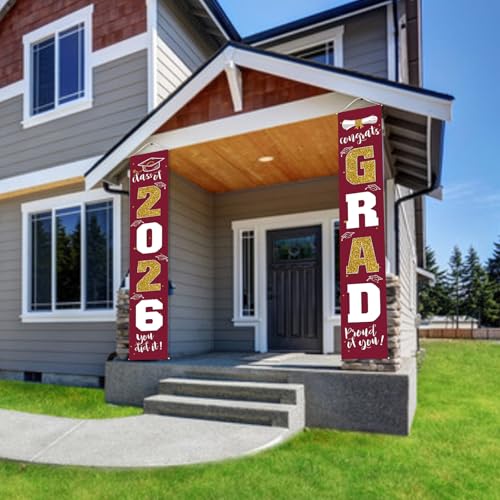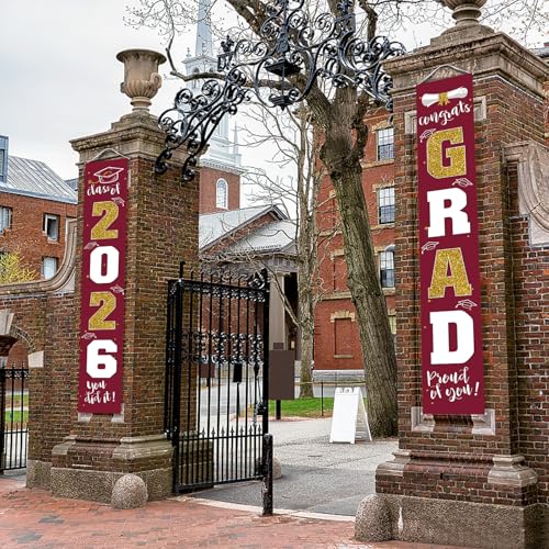 Graduation Decoration 2026: 1 Class of 2026 banner and 1 congrats GRAD banner. Size: each is 11.8" x 70.87", fits the door perfectly.