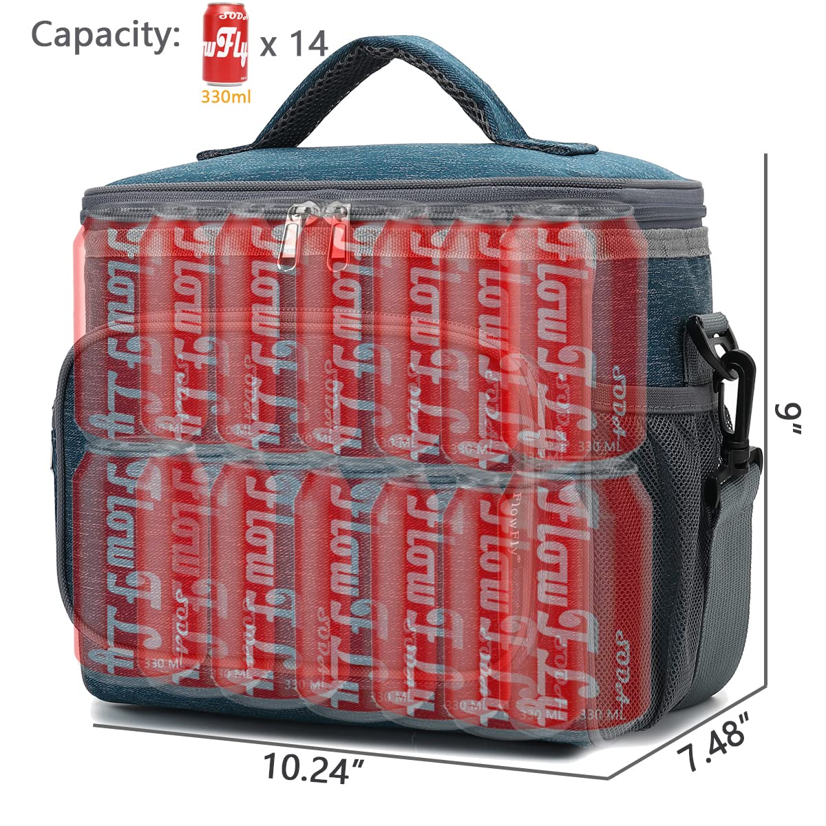 ✿ Large Size:the dimension of the container is:10.24”L×7.48”W×9.06”H,but not too bulky , it could give roomy storage space you need to hold your favotite meals,delies and lunch treats.You could fill the roomy compartments or pockets with lunch boxes, food containers, condiments,fruit salad bowls,utensils,napkins,can opener,wallet,keys and other essentials. Keep your water bottles or energy drinks inside the mesh pocket and quench your thirst of the spot.