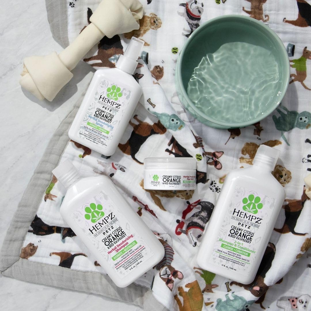 Keep your dog looking and smelling great with Hempz Petz Herbal Deodorizing Shampoo. This formula nourishes, hydrates, and restores your pet’s coat and skin with 100% pure hemp seed oil.