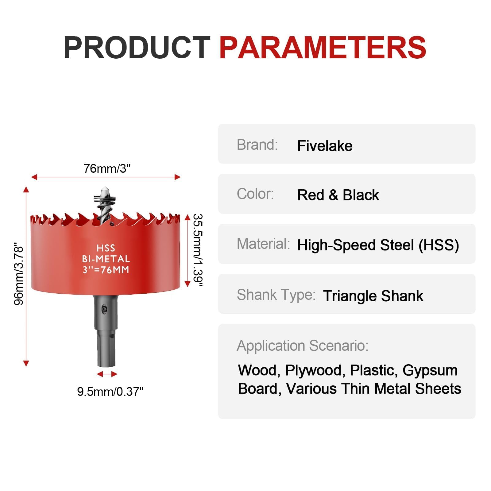 Ease to Use & Secure Clamping: The hole saw surface has clear size markings, allowing you to quickly select the desired hole saw model and get to work swiftly; The triangular shank design offers high compatibility, suitable for most standard drill chucks, especially handheld and bench drills; It facilitates quick and easy installation, preventing slipping, and ensuring a more stable grip that can withstand higher drilling torque, giving you peace of mind during use