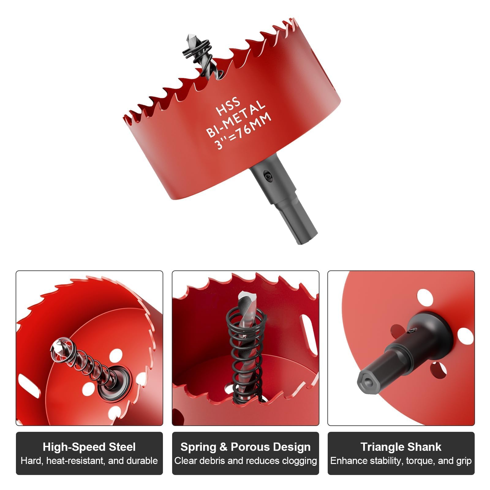 Sharp Cutting Edges: The hole saw features sharp and sturdy cutting edges, with the center drill made of M42 steel providing higher hardness and heat resistance; This ensures a sharp cutting edge, improving work efficiency and precision