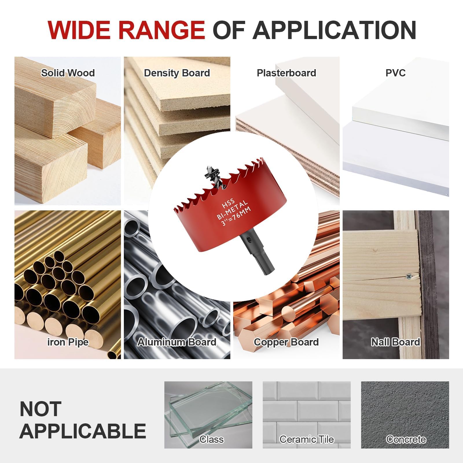 Wide Range of Applications: This tool excels in drilling various materials, such as wood, plywood, plastic, gypsum board, and various thin metal sheets; It meets your needs for drilling in multiple materials, making it an ideal choice for your cutting and drilling tasks