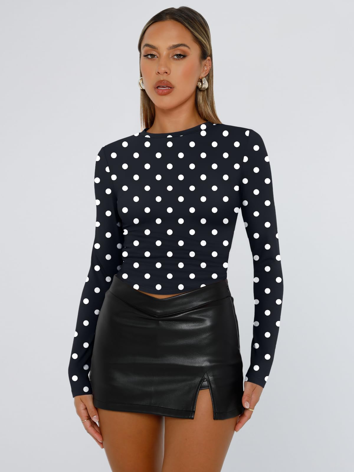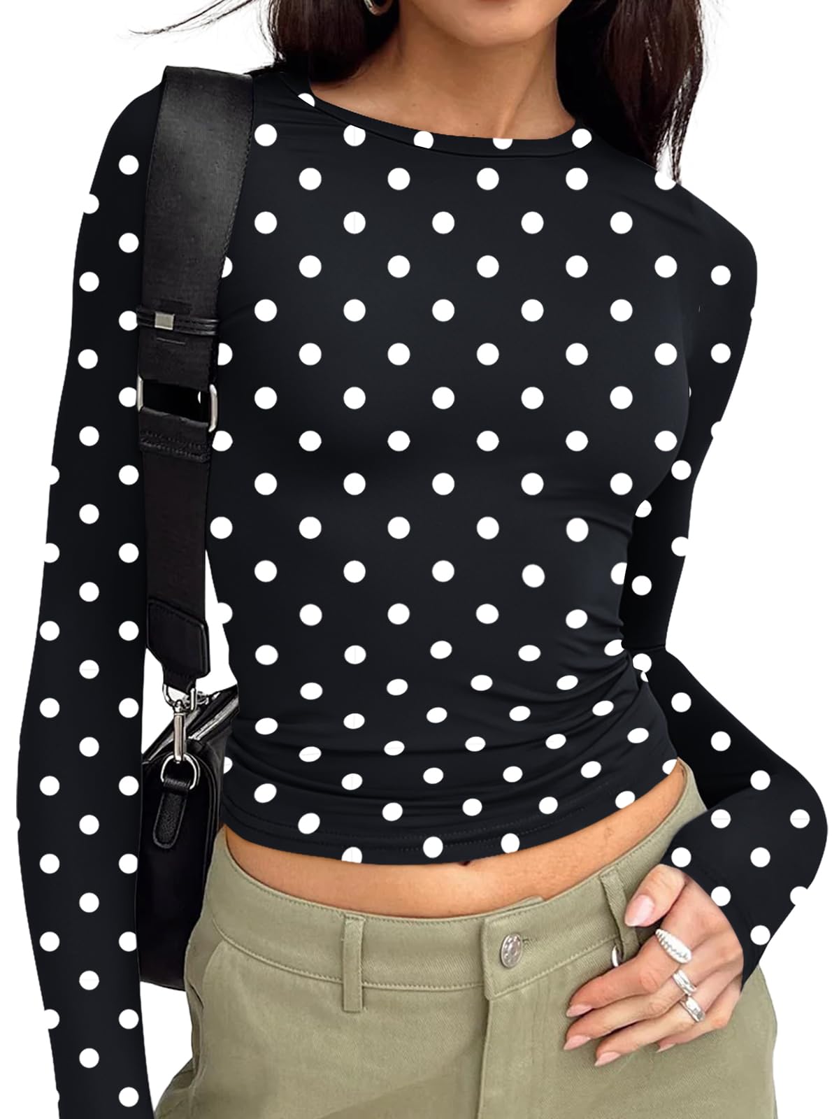 Design: Cropped and stretch fitted style,crew neck, tight underscrubs layer,you can wear it regularly or fold it up like a crop top,cute,slim fit,casual y2k style fashion