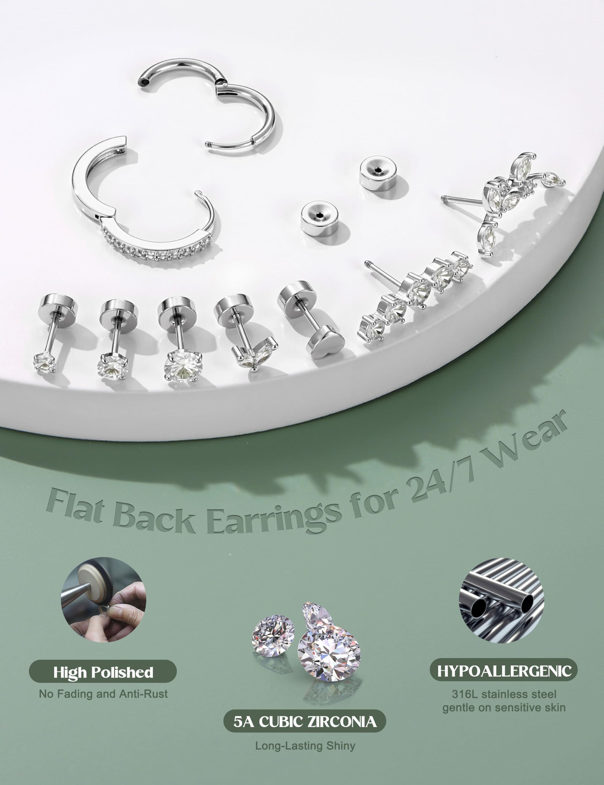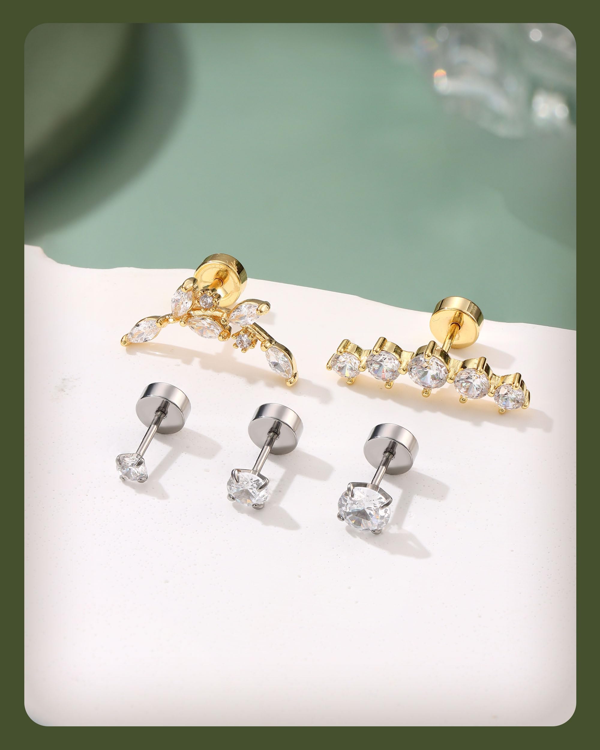 【Flat Back Earrings for Women-Comfortable Nap Earrings】--Flat back stud earrings,screw back earrings with flat backs,easy to screw on and take off,won't easy to slip off.Comfy flatback earrings,POKE FREE,comfortable sleeper earrings,suitable for 24/7 WEAR.Cartilage earring stacks set,perfect for daily wearing,provide seamless comfort for any activity,even when sleeping,playing,working,exercising
