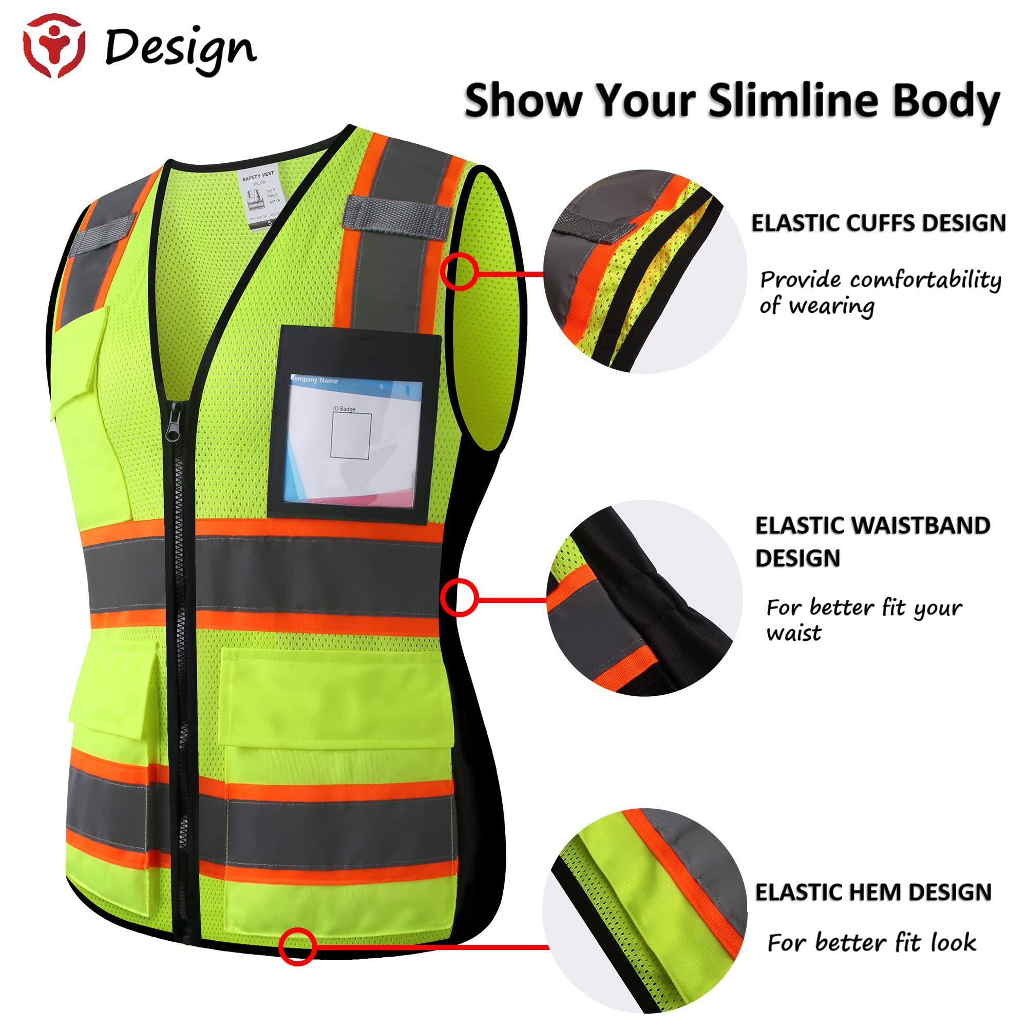 BREATHABLE MESH: 100% polyester mesh material. Hi vis safety vest for women is lightweight, comfortable, breathable, easy to carry, machine washable in cold water, and quick-drying. The safety vest sleeves, waist and tail are stretchable and retractable, giving you the ideal streamlined shape when you are working.