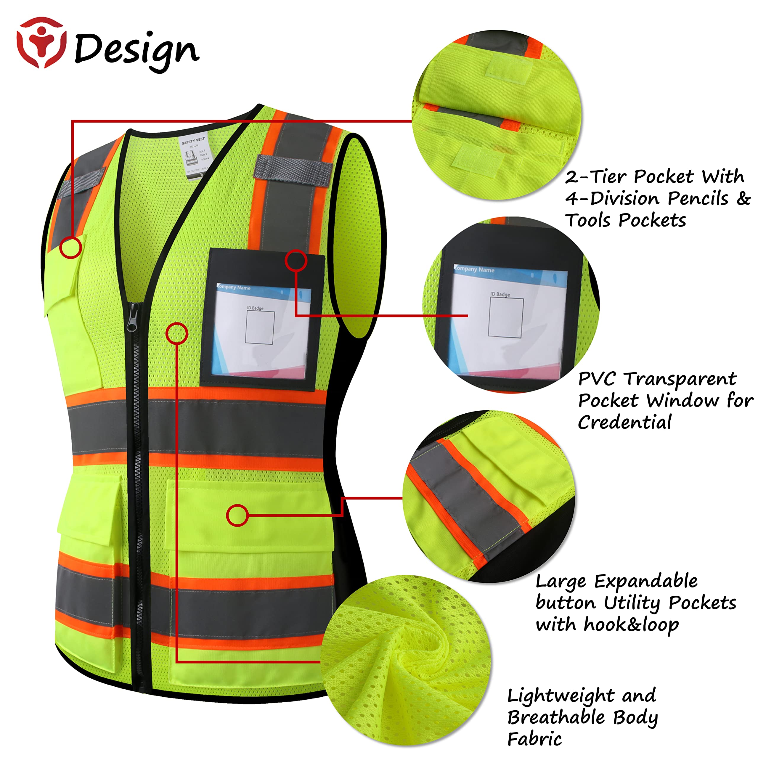 TOTAL 8 POCKETS: Work safety vest with 8 pockets including 2 large lower pockets. Reflective vest with pockets and zipper is designed for easy sorting and easy access for various tools and equipment of work vest, such as mobile phone,flashlight,laser pointer, business cards, ID cards and other items.