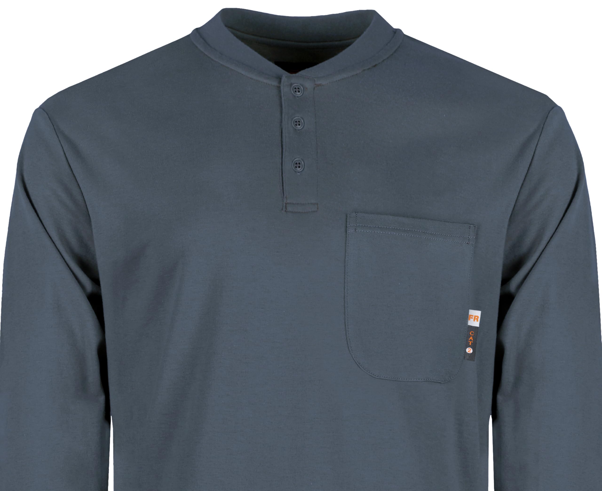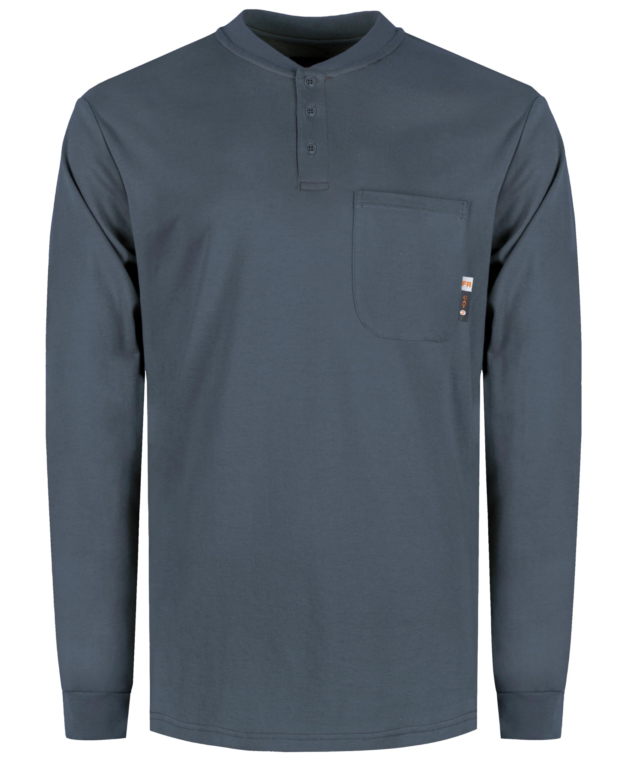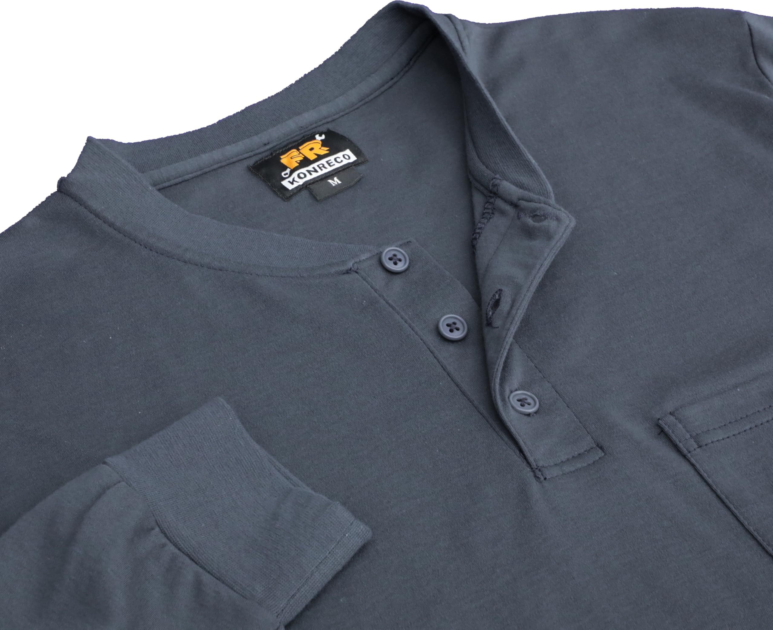 FR MATRIALS:5.5OZ cotton knit FR treated,FR buttons,FR sewing threads!Clear FR tag on arms and bottom front.
