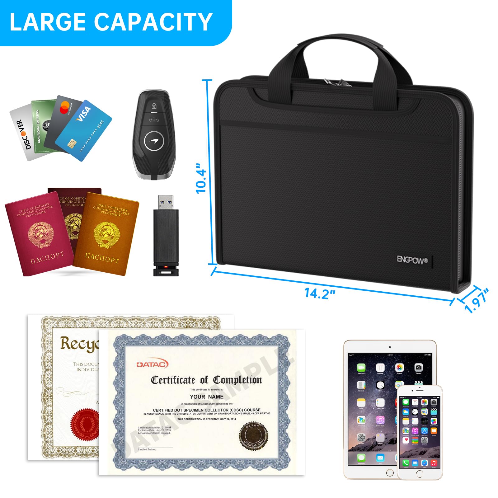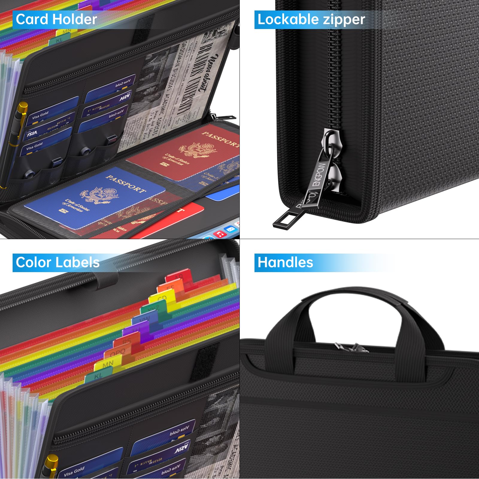 Accordion File Organizer: A Safe Enough Folder to Keep Your Files. Say goodbye to cluttered files and disorganization with ENGPOW's file organizer folders. Compared with other folders,our fireproof folders is allows you to neatly store and classify letter/A4 files, receipts, cards, USB drives, pen, passports and more in a safe and orderly way. Perfect for daily file filing and storage.The Non-dusty material can prevent dust from sticking to the outside of our folder,always keep it neat and tidy.
