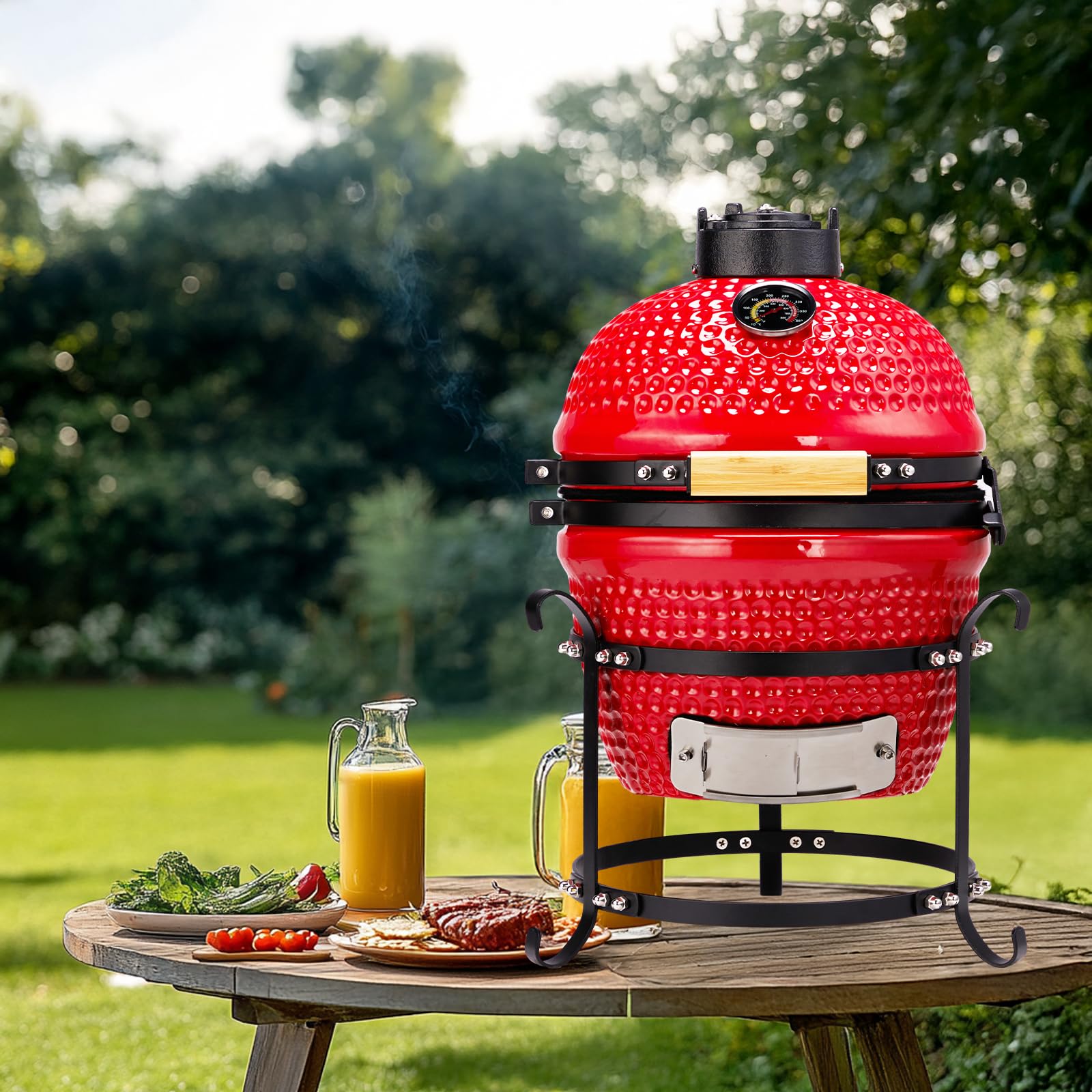 Kamado style Portable BBQ Grill & Smoker perfect for both high heat grilling and low-and-slow cooking