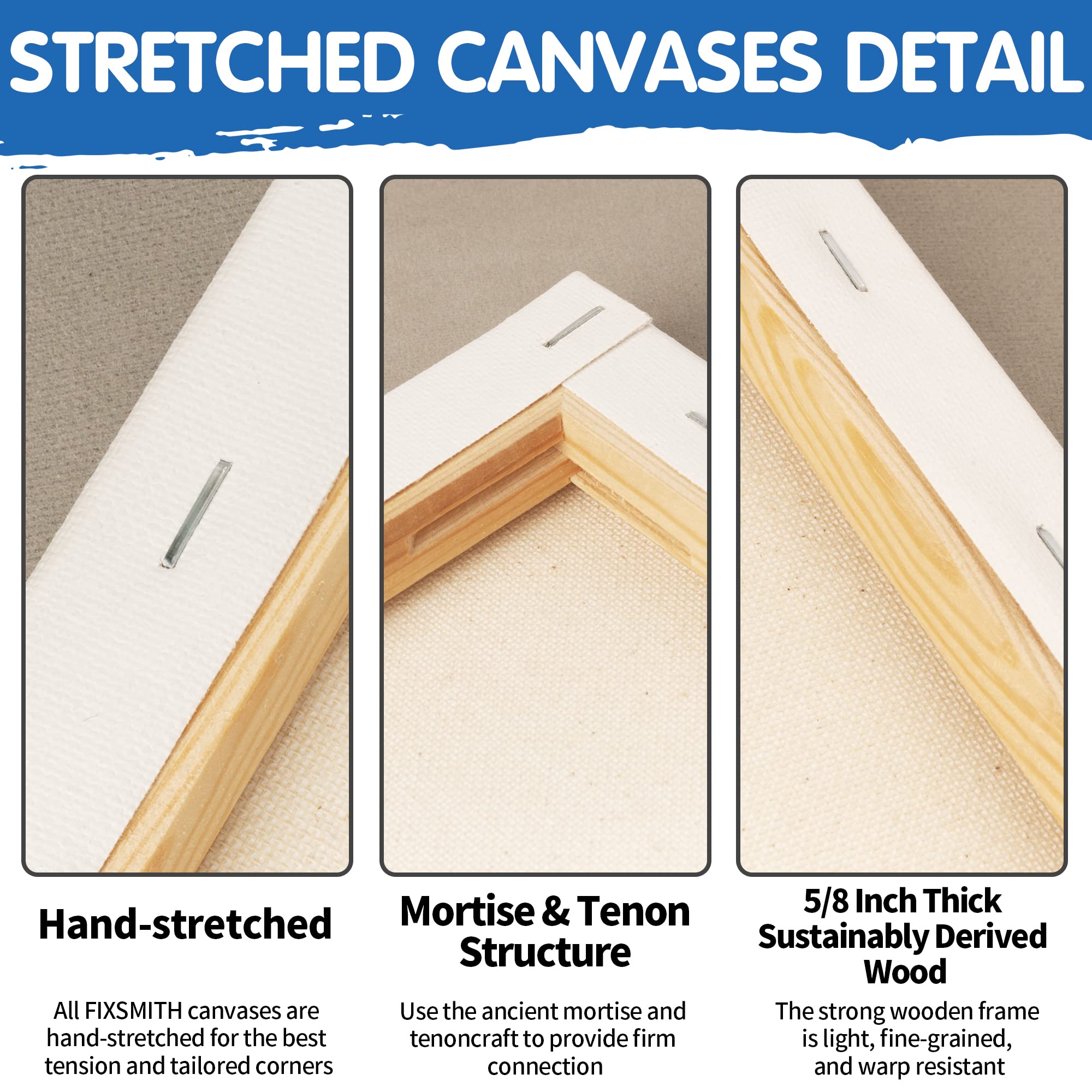 TRIPLE PRIMED SURFACE: Each stretched canvas is triple-primed with a high-quality, acid-free gesso that offers a great tooth quality. You wonβt have to worry about the canvas surface sucking up all your acrylic paint. So you can start painting and creating as soon as you remove the wrapper and help bring out your best artistic abilities.