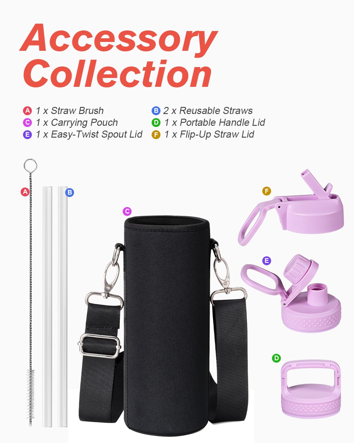 Flexible Drinking On-the-Go: This water jug comes with 3 different lids. The screw-on lid with flip-up handle is for easy ice refilling with superior portability; spout lid makes it convenient to drink hot liquid and straw lid for sipping cold