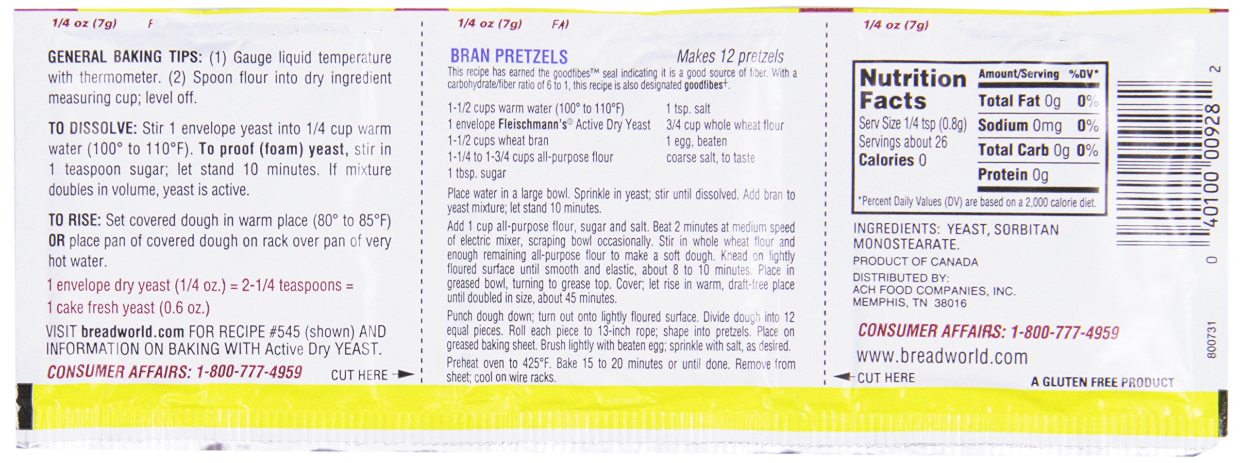 All Natural. Gluten Free. Kosher. Ingredients: Yeast, Sorbitan Monostearate.