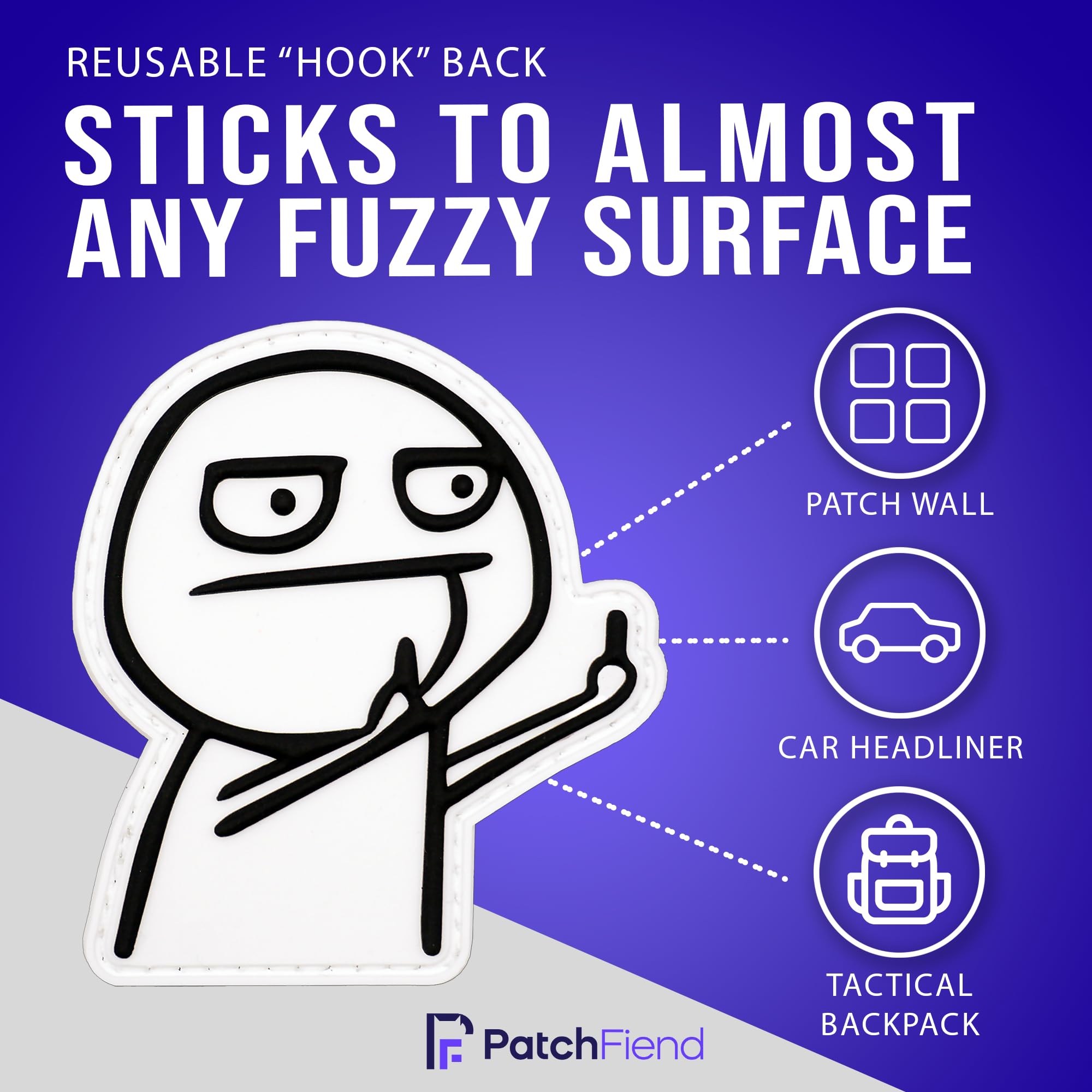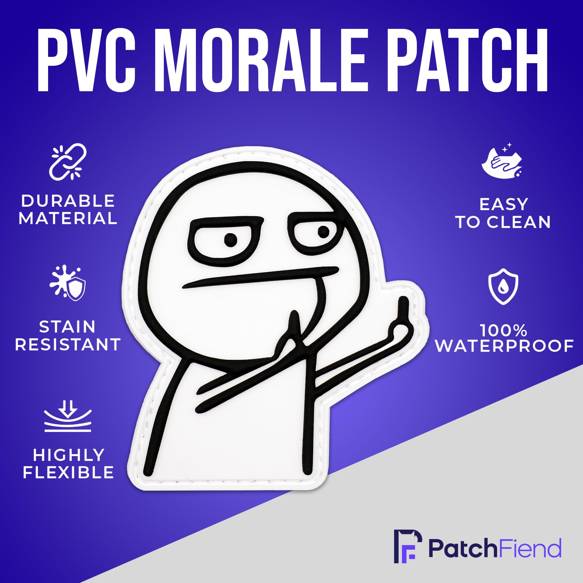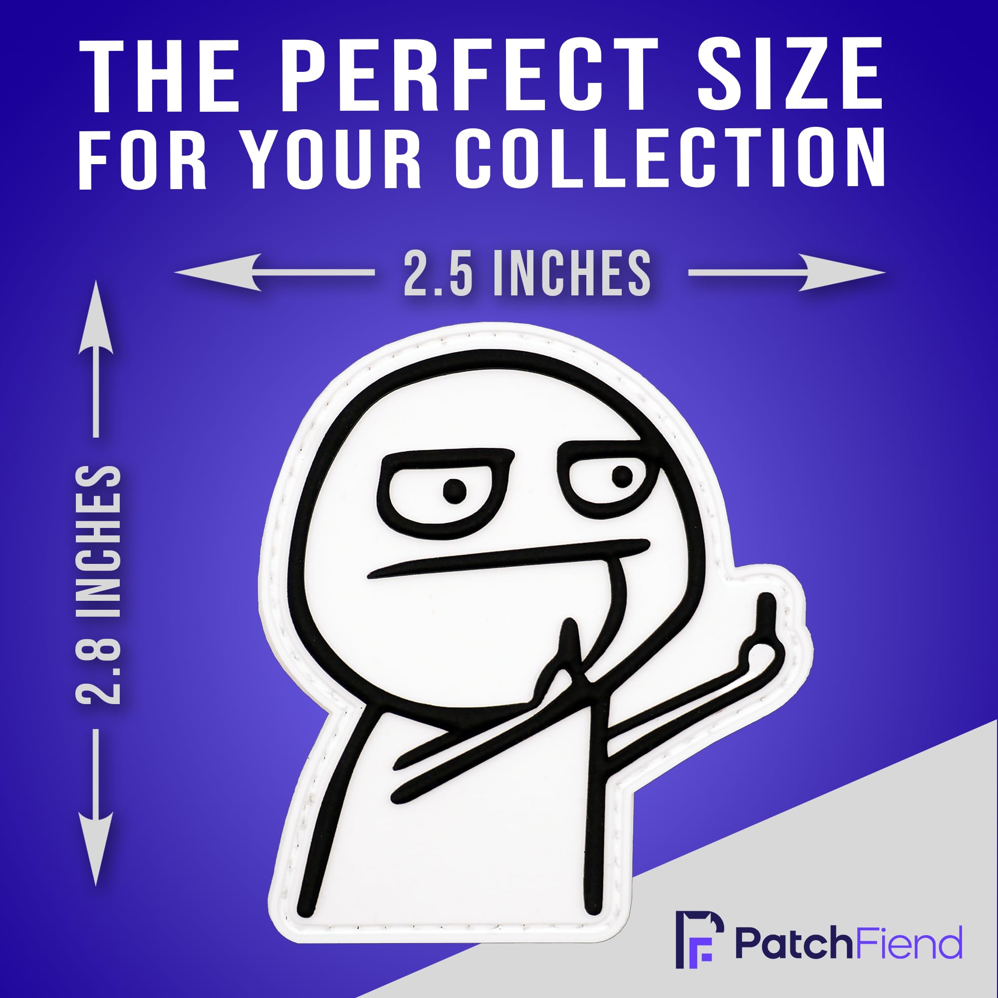 Sometimes a patch calls to you. It has a way of telling the world your innermost feelings in a single image. Well, if you are having a bad day, or just feeling a bit on the anti-social side, this middle finger guy meme patch is the one you have been searching for... It just gets the point across perfectly. The Middle Finger Guy Meme PVC Funny Morale Patch is made of durable rubber. "Finger Guy" is hook-backed so you can attach it to any loop or fuzzy surfaces like a car headliner, military backpack, military gear, patches for jackets, or your favorite patch wall, and measures 2.8″ by 2.5″. This morale patch is a must-have for any collector, airsofter, military or service dog owner. The small moral patch, features a funny design that is sure to add some humor to your gear. The hook backing makes it easy to attach to any backpack or harness. Not just for military or service dog owners, this tactical patch is also perfect for fans of anime or cool patches. It's a creative and fun way to express your interests. The hook patches make it easy to switch out your patch depending on your mood. Upgrade your gear today with our PVC patch - the perfect addition to any backpack or tactical bag. Choose from our selection of funny patches, tactical patches, morale patches, and more. With patches for backpacks and jackets, you can easily customize your gear to fit your style.