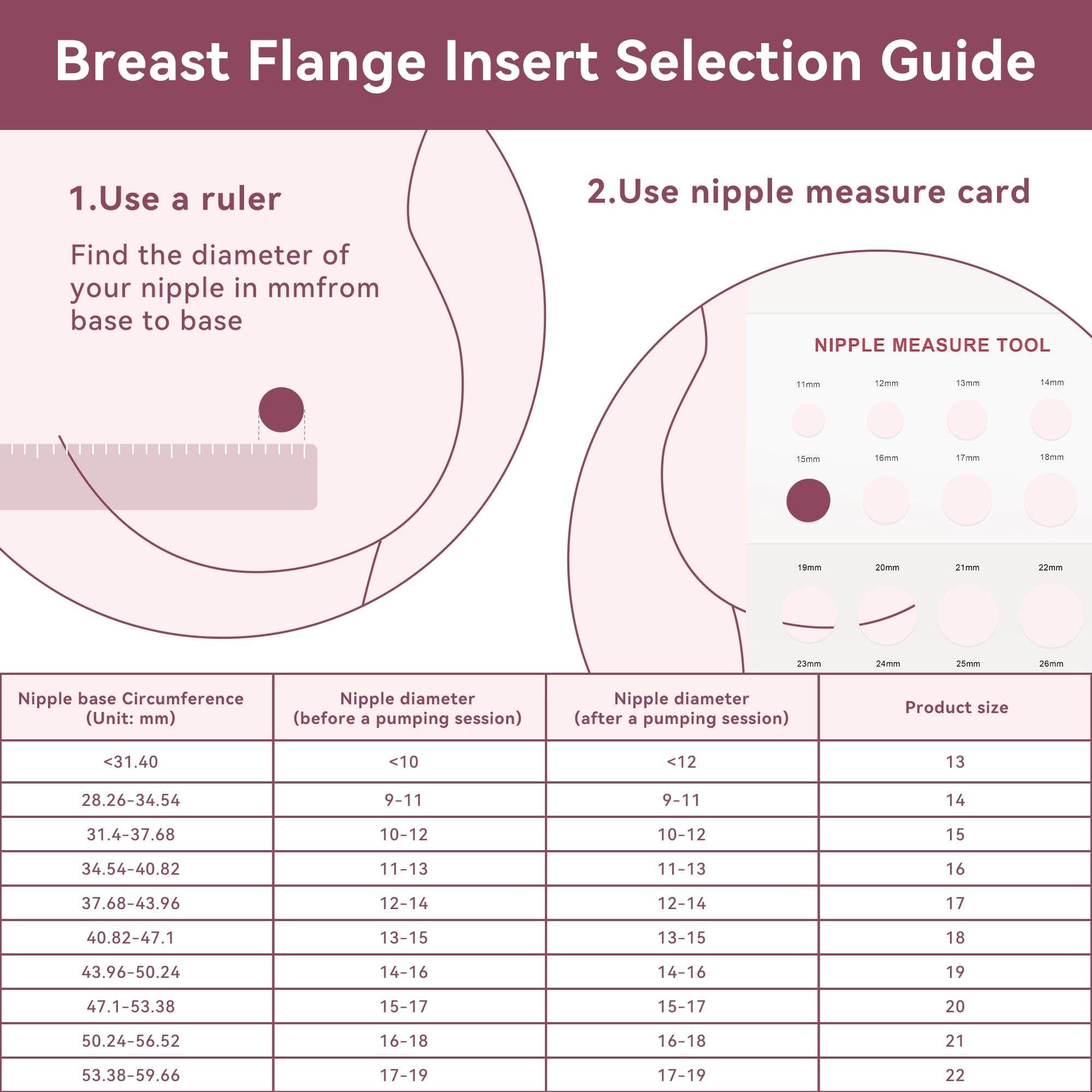 Flange sizing kit allow you to adapt your breast pump to the appropriate size for optimal suction. Perfect for figuring out your optimal flange size