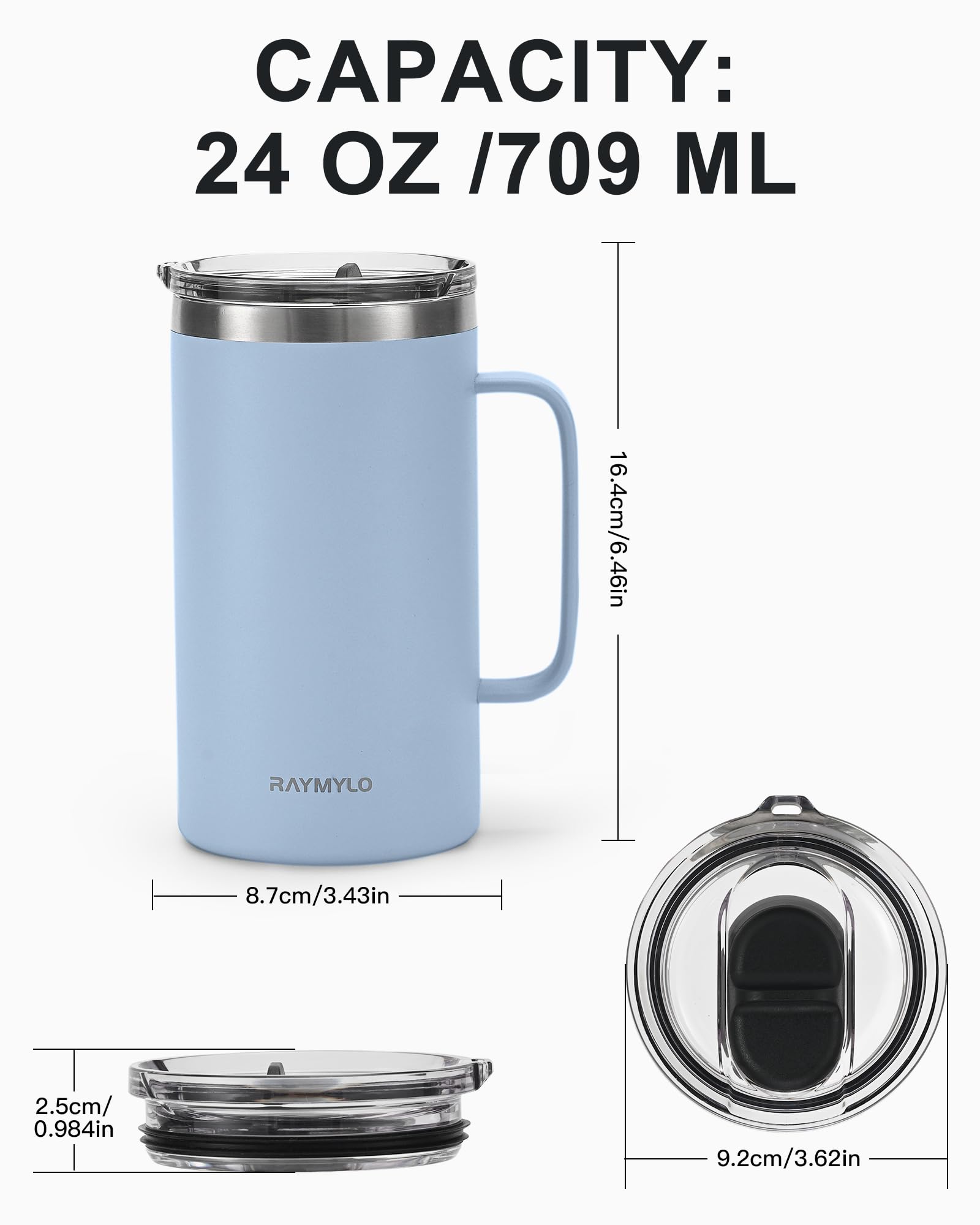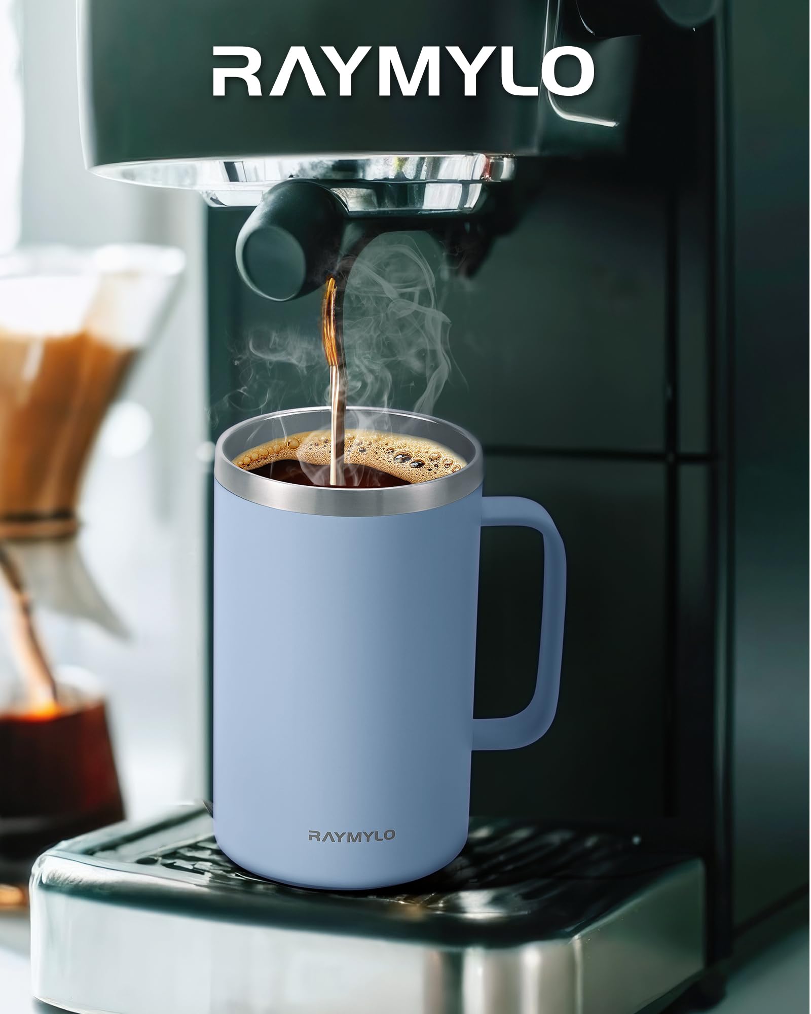 Double-Wall Vacuum Insulation: RAYMYLO Coffee Mug keep your drinks icy-cold for 9 hours and cozy hot for 3 hours with advanced Double-wall design! Perfect for hot summer days or long work hours, this insulated coffee mug with handle ensures your drink stays refreshingly cold or deliciously hot when you need it most.