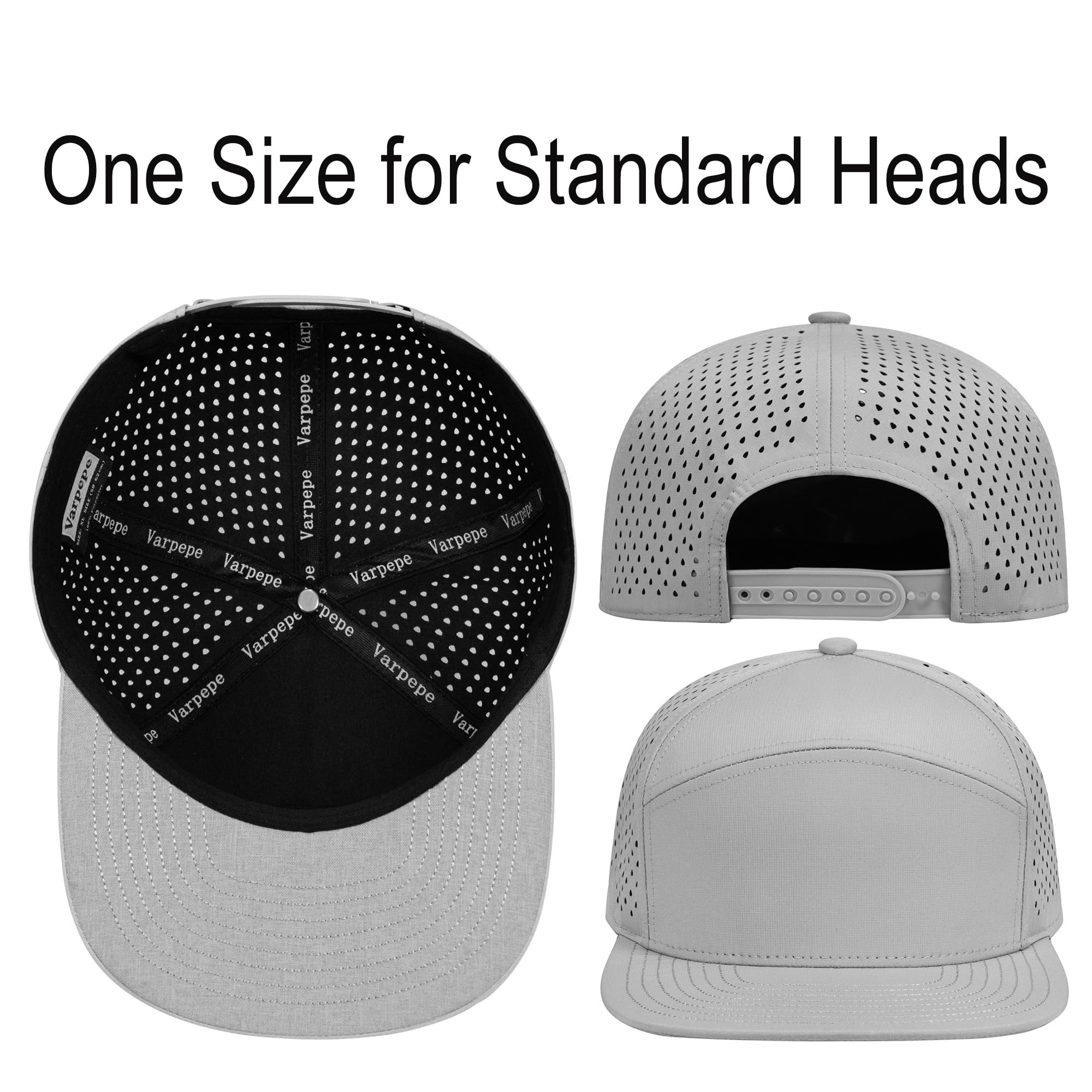 Varpepe Hat Design: Stylish and functional,structured front panels that maintains shape, 6-panel, flat brim, laser-perforated side & rear panels for breathability, and soft touch adjustable snapback closure