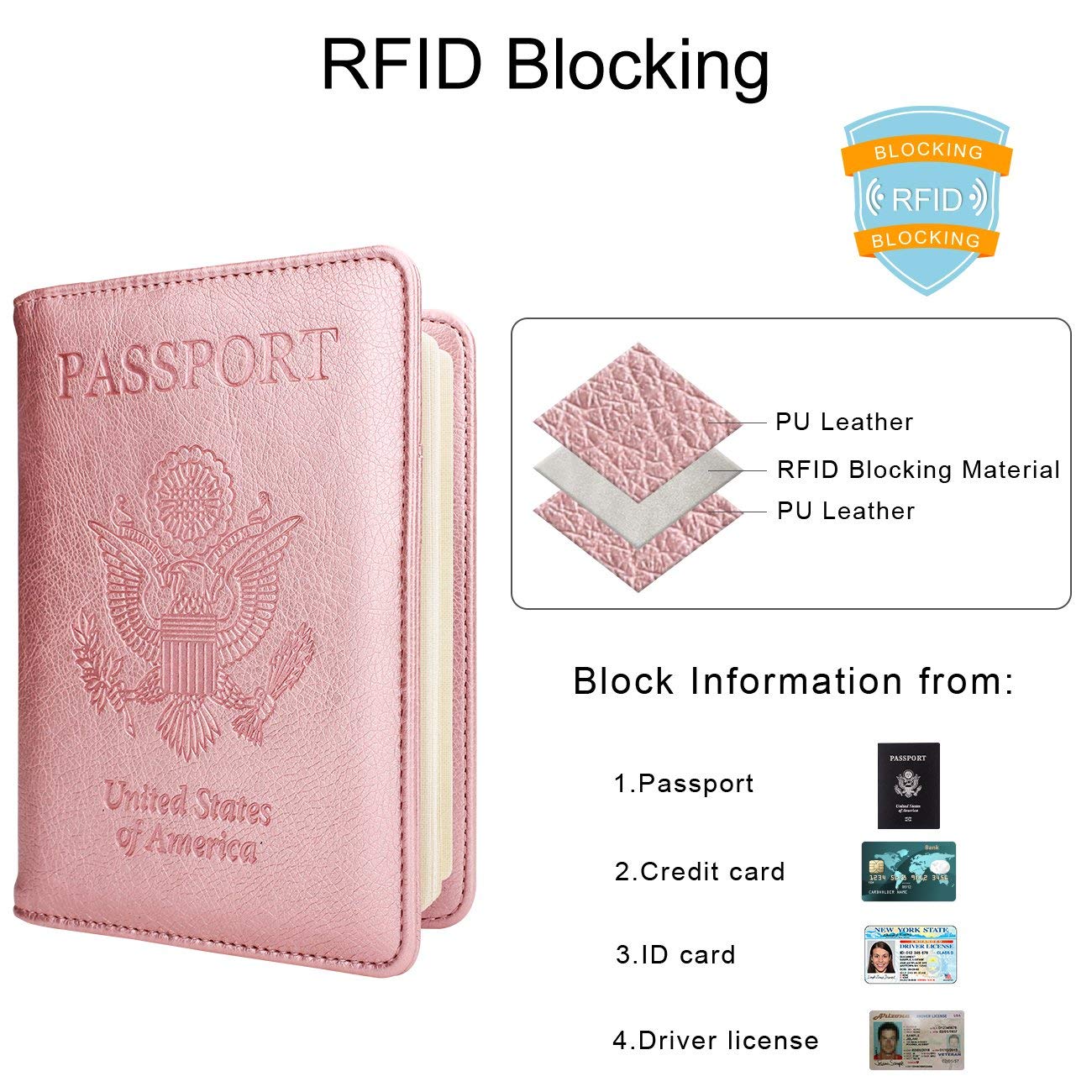 Security Passport Book Protector: With RFID blocking shield material inside, this RFID Blocking passport wallet helps prevent personal account information disclosure. Comes with an elastic strap which can secure items inside, rfid wallet will not open in your bag or luggage