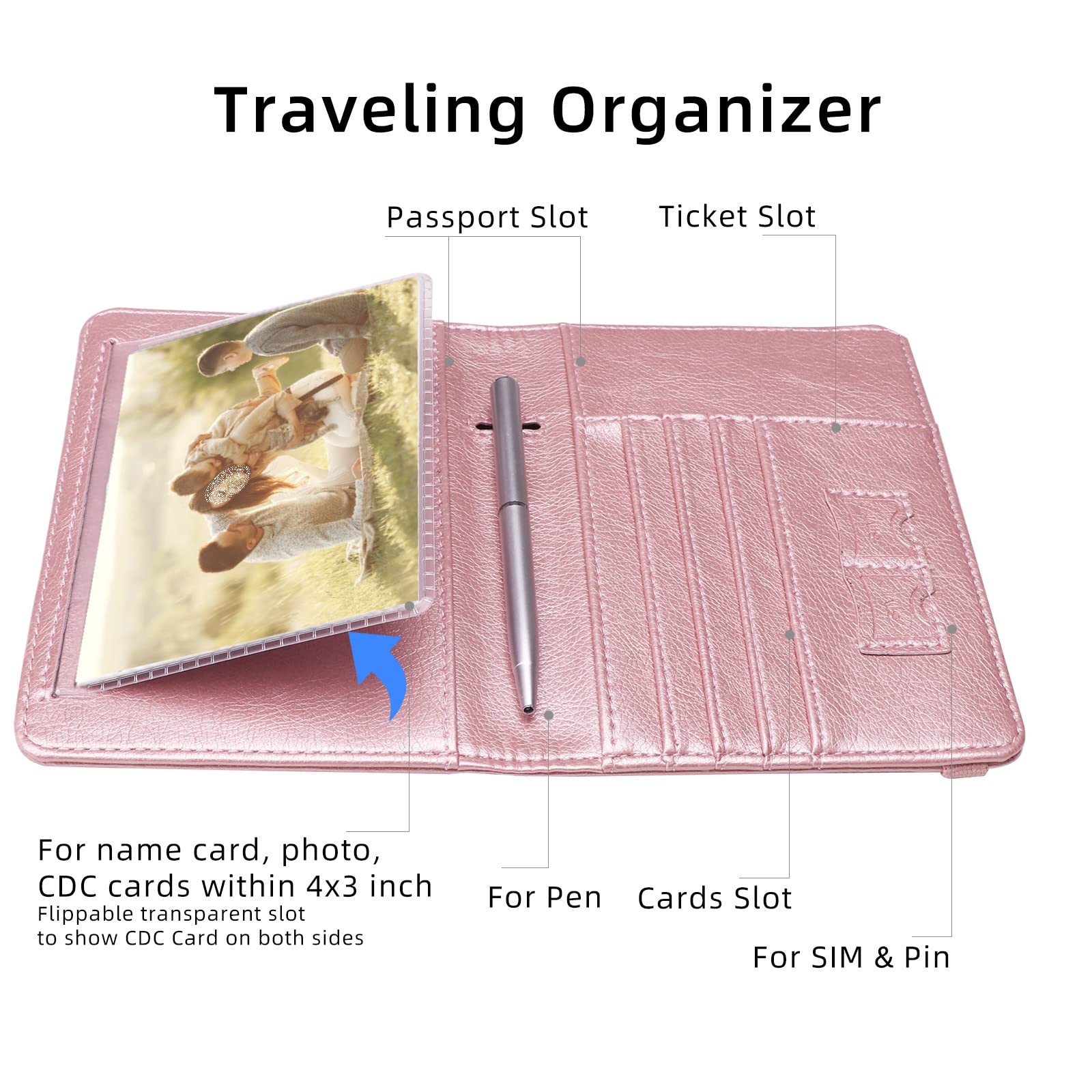Practical Travel Accessories: This passport cover and card wallet has multiple slots to hold business cards, credit cards, cash, boarding passes sufficiently, two SIM slots for SIM cards, a pen slot for pen. Allows convenient access to information during boarding and transit