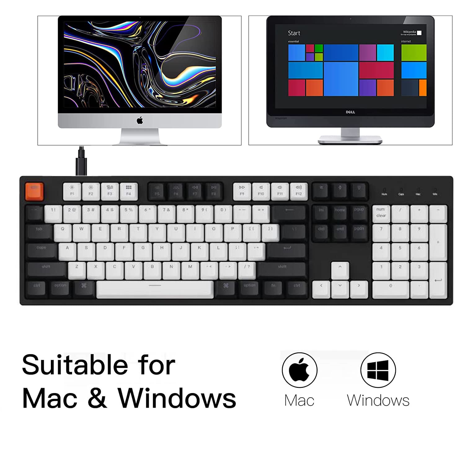 With a layout optimized for Mac, the C2 has all necessary multimedia and function keys (Num Lock works with Windows only), while compatible with Windows, and comes with a dedicated Siri or Cortana key. Extra keycaps for both Mac and Windows operating systems are included.