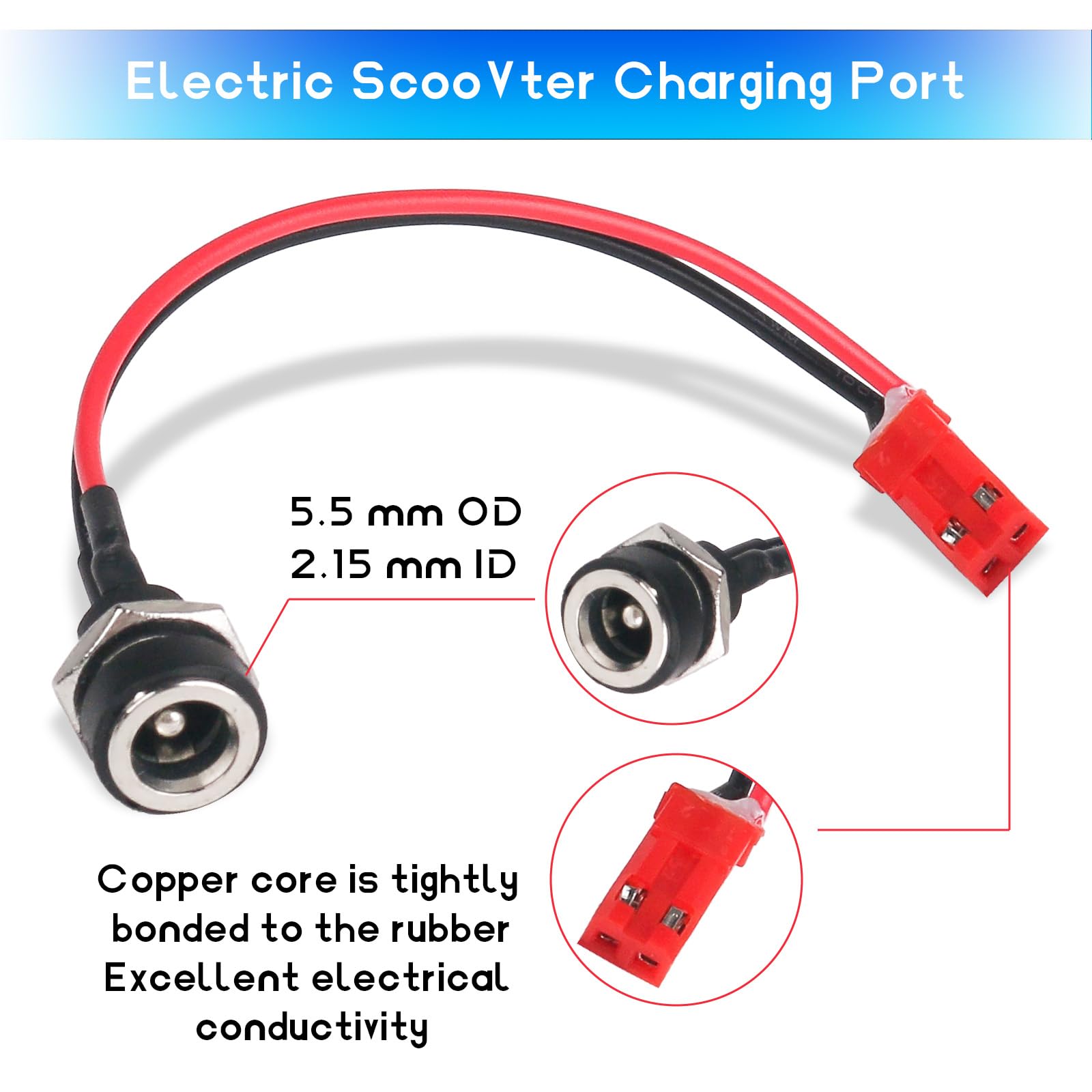 POWER CABLE: Gotrax scooter charger port for gotrax scooter charger port hoverboard 5.5 Mm Od, 2.5 Mm Id Charger Port