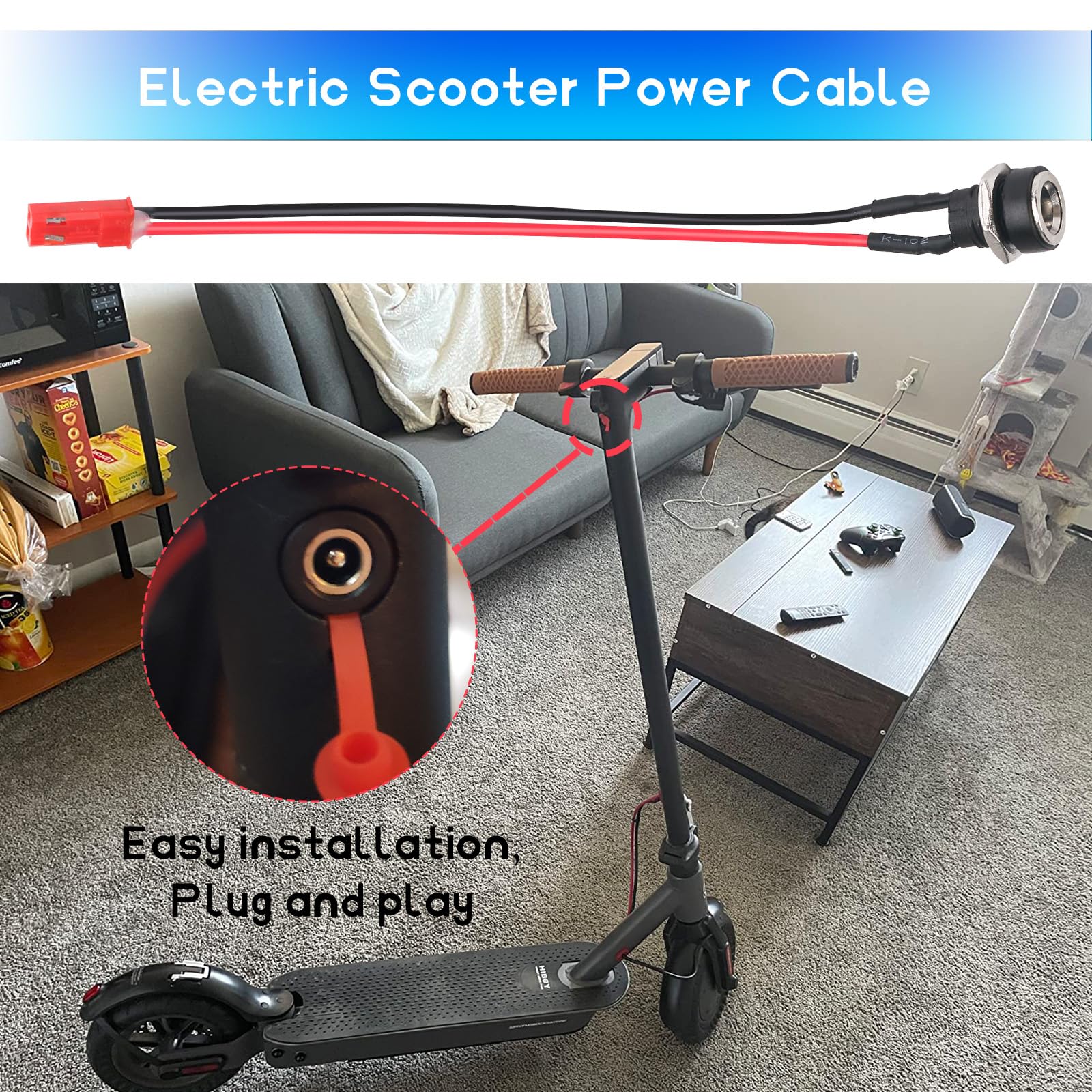 EASY TO INSTALL: for gotrax charging port, Turn off the power before installation, no tools required, Plug and play, easy installation,just remove the old power cord and replace it