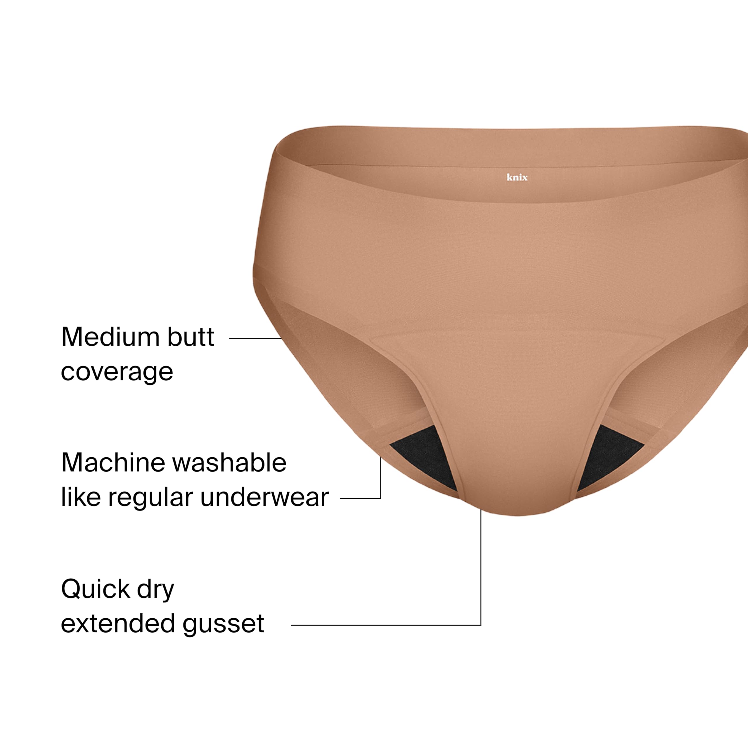 Quick Dry, Extended Gusset: Knix underwear has a 9-inch gusset that stops blood, pee, or sweat from leaking through