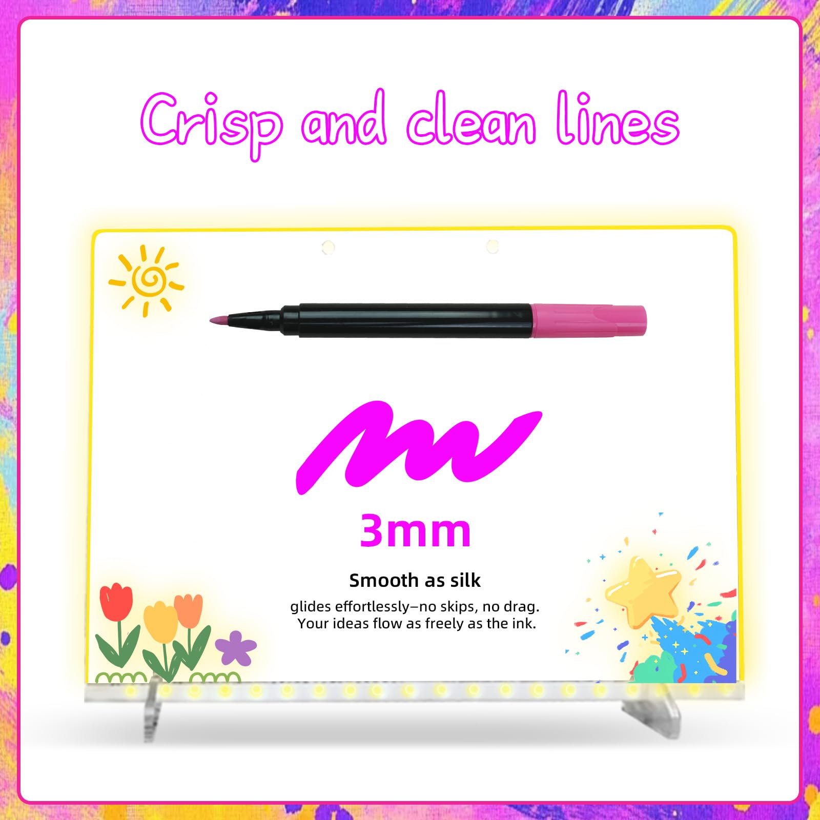 Smooth Writing: Our dry erase markers for clear acrylic board are designed with high-quality materials and ink, which fits your hands perfectly, ensuring that your writing process is smooth and smooth, not easy to dry, and the ink output is stable, so that your hands are clean and free from ink and hand soreness
