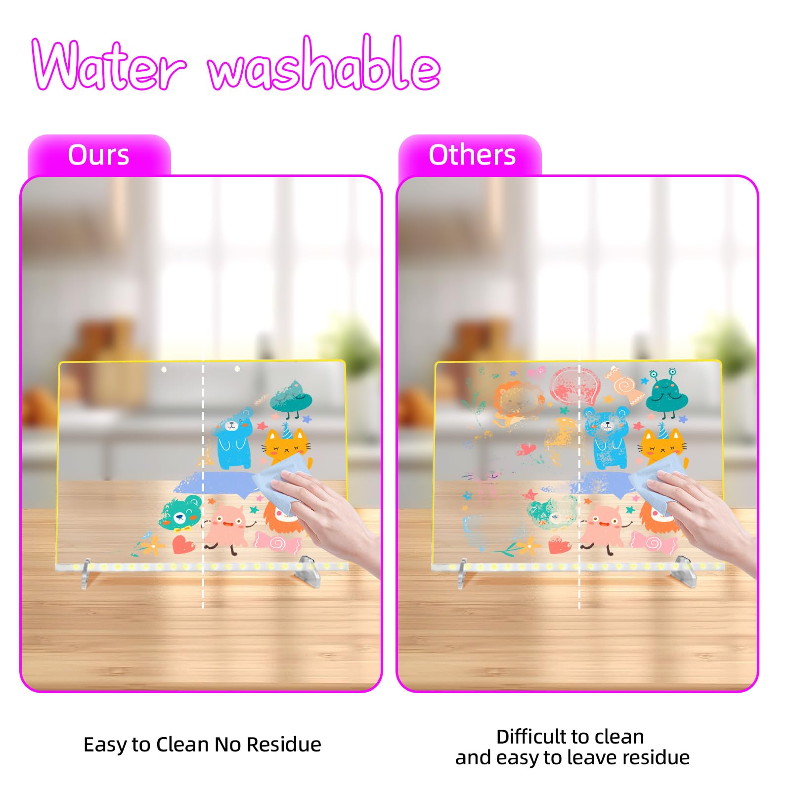 Easy to Erase and Reuse: The washable dry erase markers pen can be written without effort without unscrewing the pen cap, and it is easy to erase, making your LED drawing board clean and tidy, and convenient for repeated use
