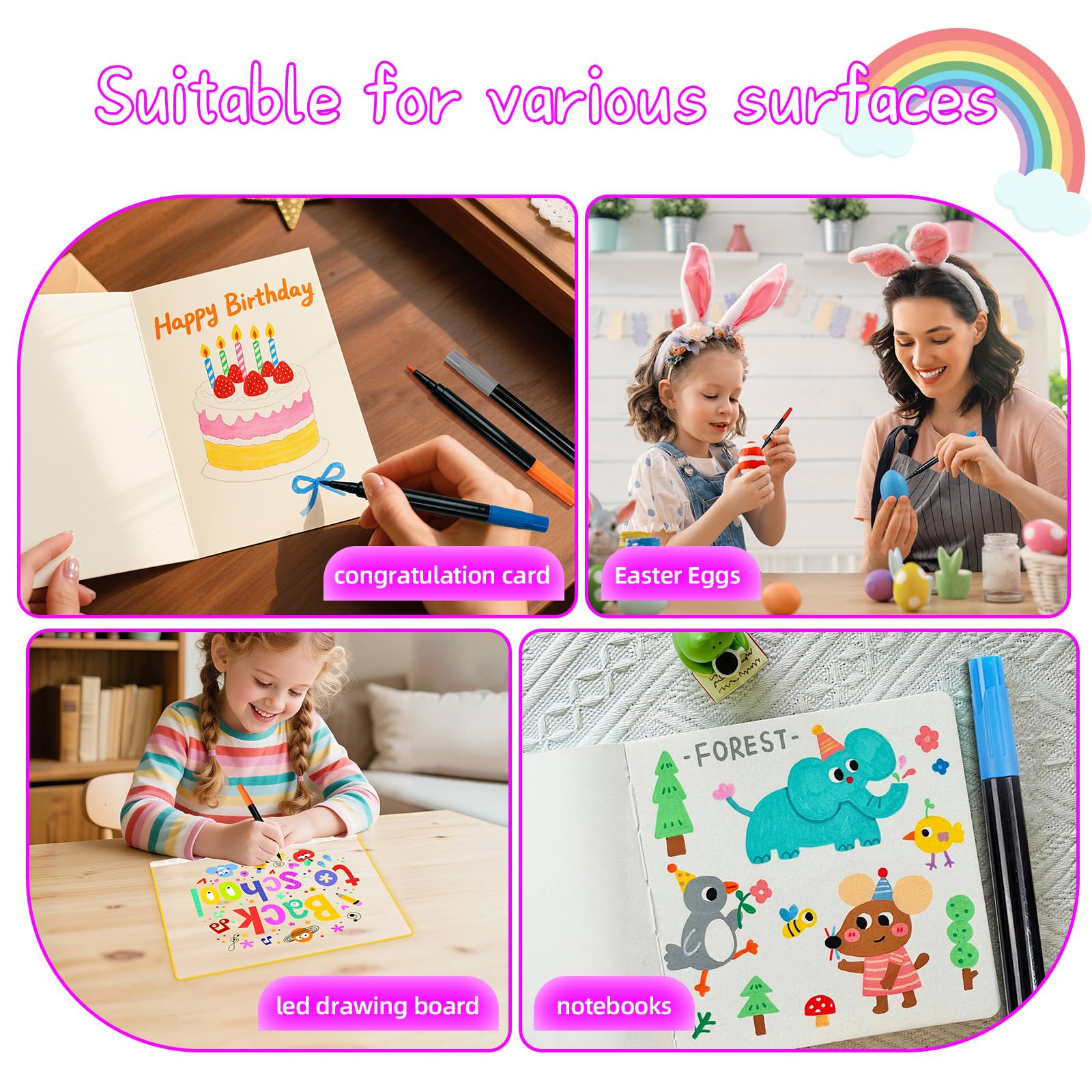 Suitable for Multiple Surfaces:Our neon markers are suitable for writing on a variety of surfaces, including acrylic LED boards, paper and other smooth surfaces. Whether it is home, school, cafe, party, as long as there is a need for creativity, it can show its talents