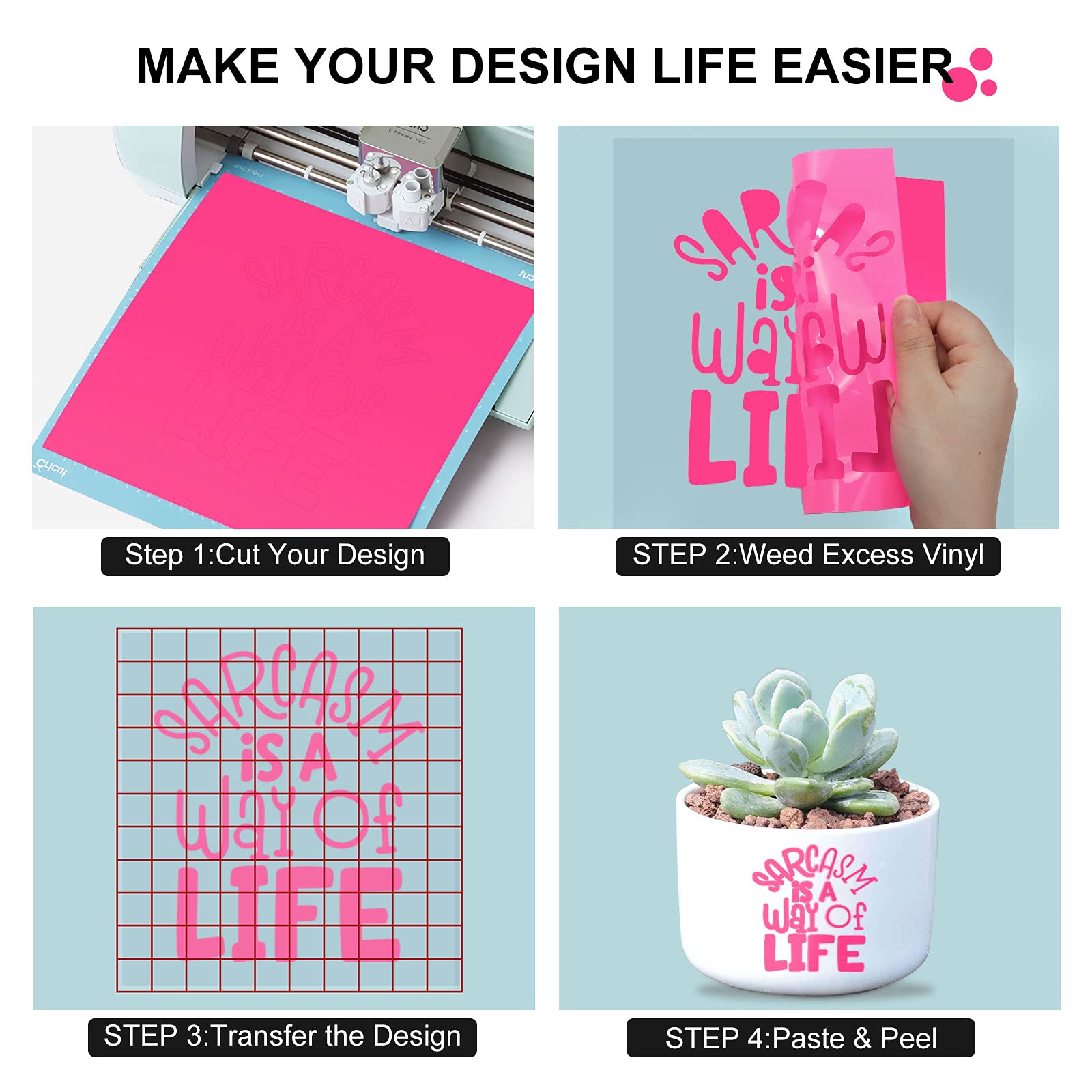 HIGH QUALITY ADHESIVE BACKING - With our glossy pink vinyl expect a stress free experience. Using our pink permanent vinyl with PET backing, you will not need to clean your mat and worry about project damage. No more cheap paper backing ruining and separating from the pink vinyl in the cutting process. Not only is it Easy to Use, but our Premium backing also protects the adhesive until it is peeled and ready for you to use.