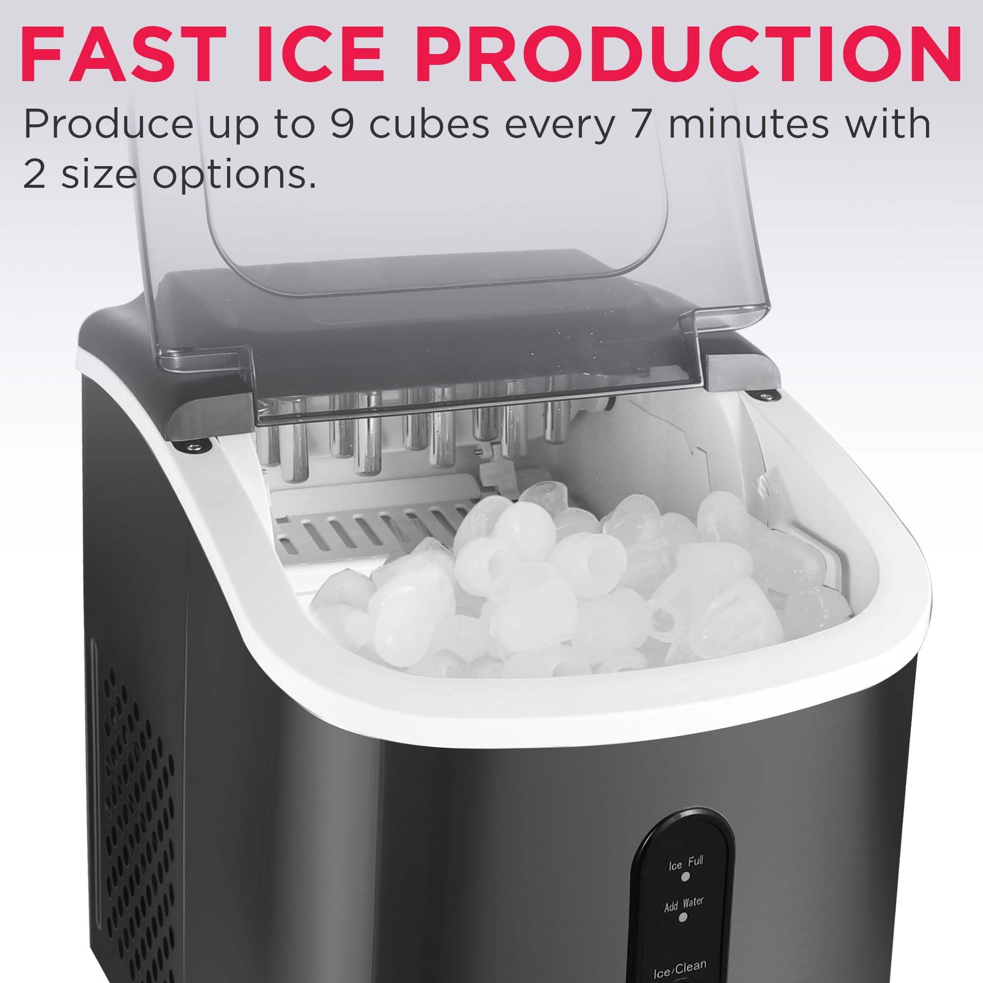 Are you looking for a quick and simple way to make ice? Look no further! Igloo brings decades of experience in manufacturing high end cooling products. This ice maker is no different. Featuring an over-sized ice basket capacity of 2.2 lbs this is the ultimate in ice making technology. All you need to do is fill up the reservoir with water, push a couple buttons and voila! Ice is made! Your ice maker will product the first batch of ice in as little as 6 minutes and can produce 26 lbs of ice per day. Chose from 3 ice sizes, small medium or large ice. All controls are made via the electronic control panel and LED indicators. Easy to move around your counter top or bring it to the pool, on your boat or anywhere else that you want to have ice right at your fingertips. Your summer parties will never be the same once you add this to the fun!