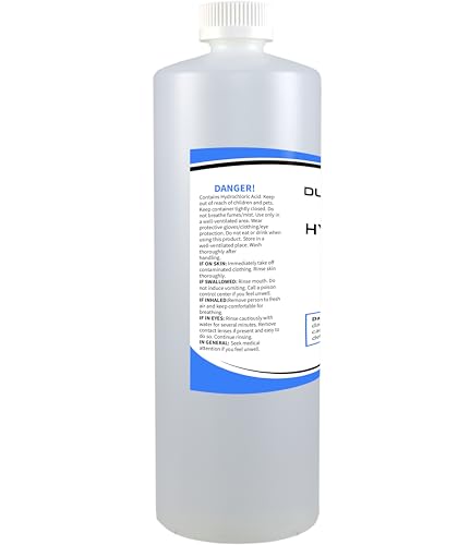 Industrial grade hydrochloric acid may be used for various applications such as cleaning, pH adjustment and in the lab. It typically has a clear to greenish color.