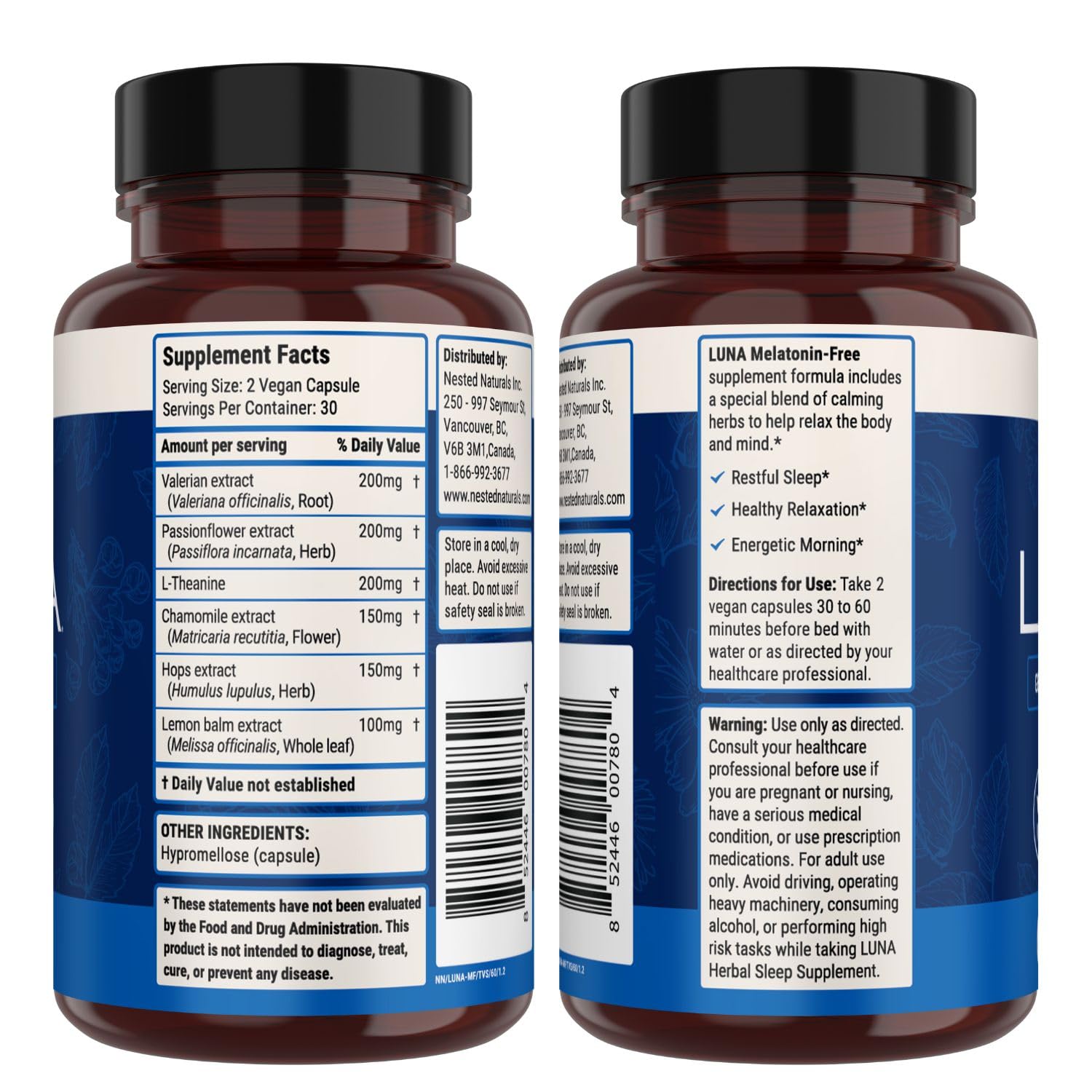 Natural Sleep Ingredients: Luna Melatonin-Free features a combination of ingredients known for their sleep-enhancing properties. Each ingredient is carefully selected to work in harmony, providing a comprehensive sleep aid solution.