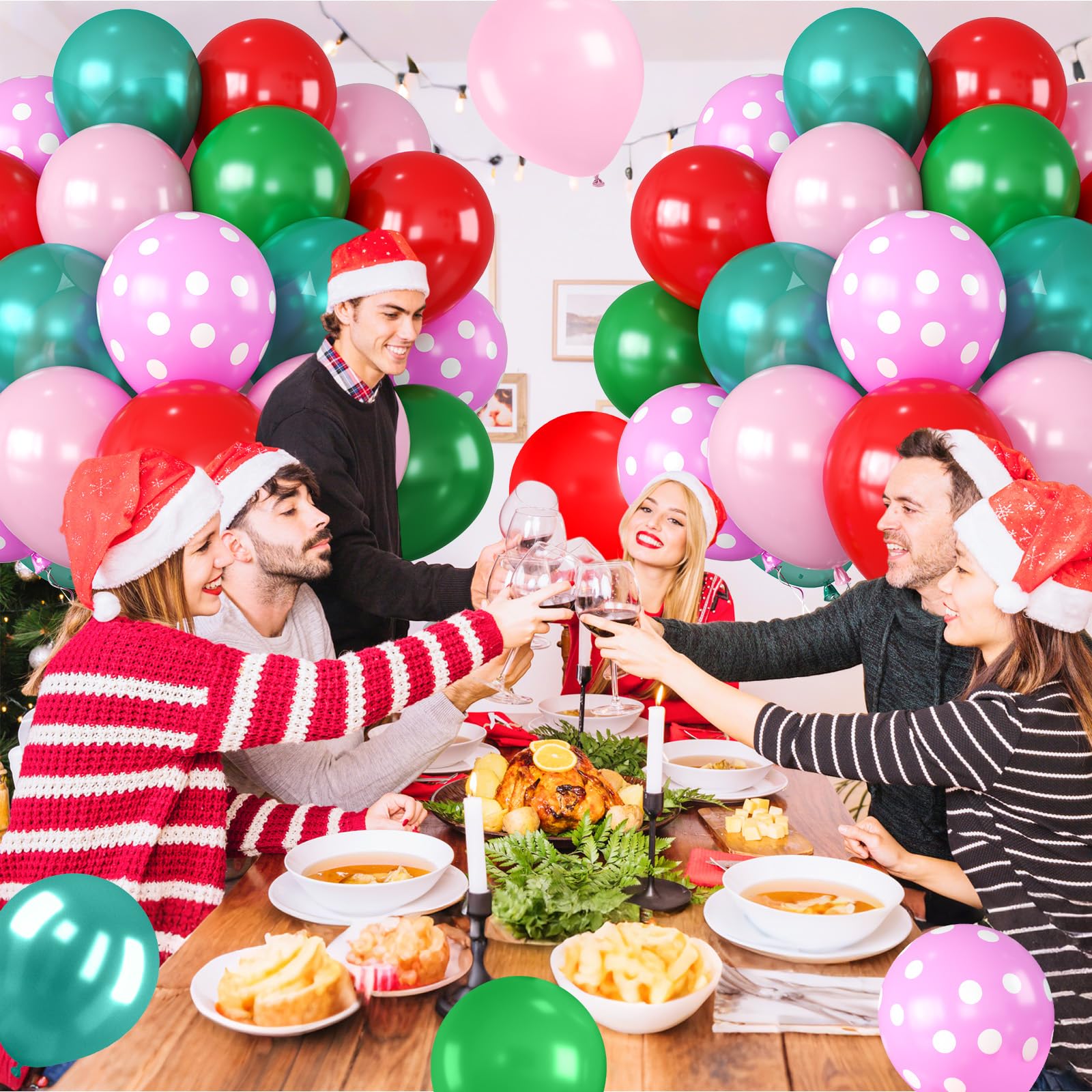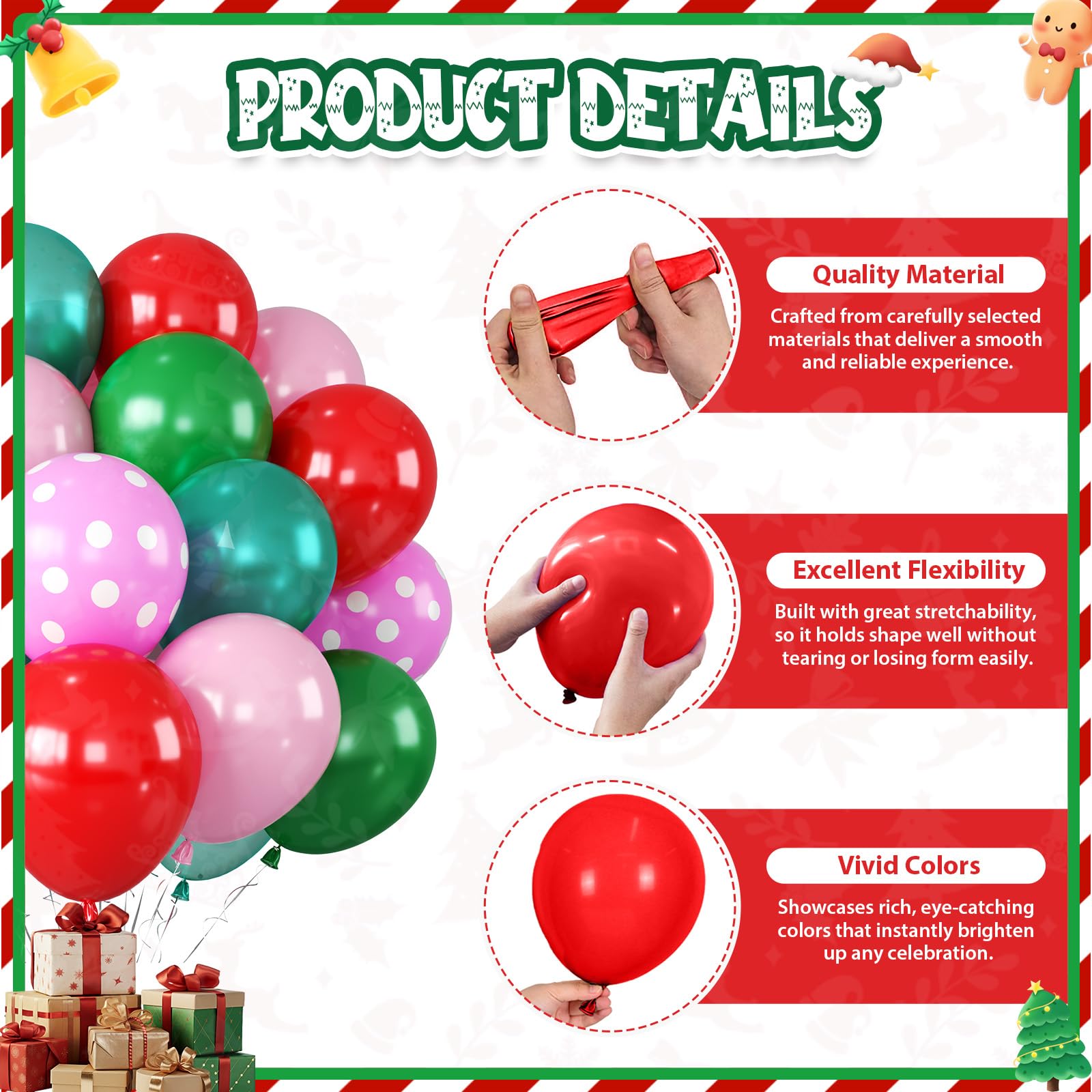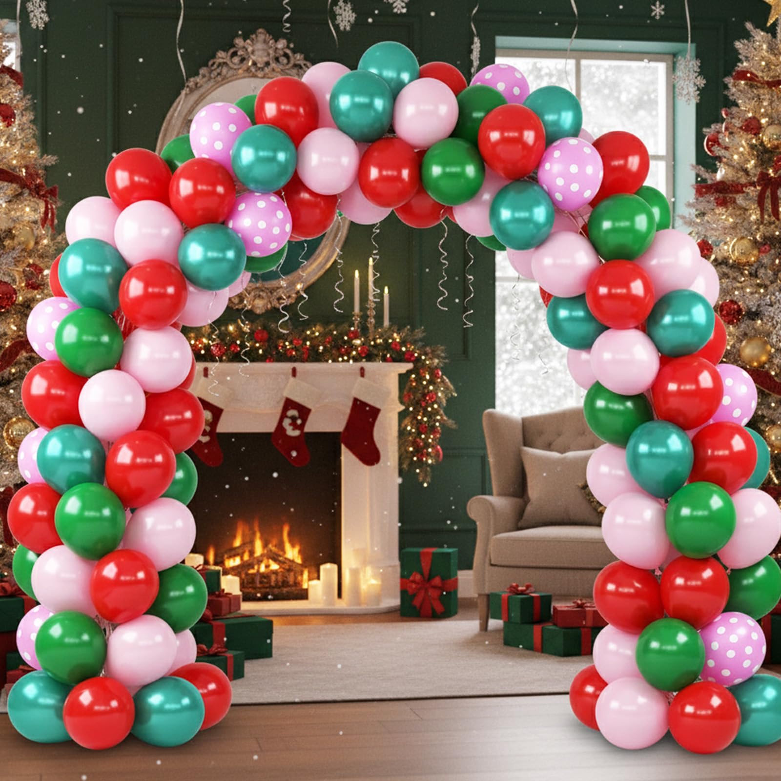 Versatile for Holiday: This red green and pink Christmas balloons bring festive charm to countless occasions. Pair it with your Christmas tree for a cozy living room display, frame the fireplace to create a warm holiday gathering spot, or set it up as a cheerful backdrop for holiday photo booths. The playful mix of colors also complements other decorations, making your event atmosphere memorable.