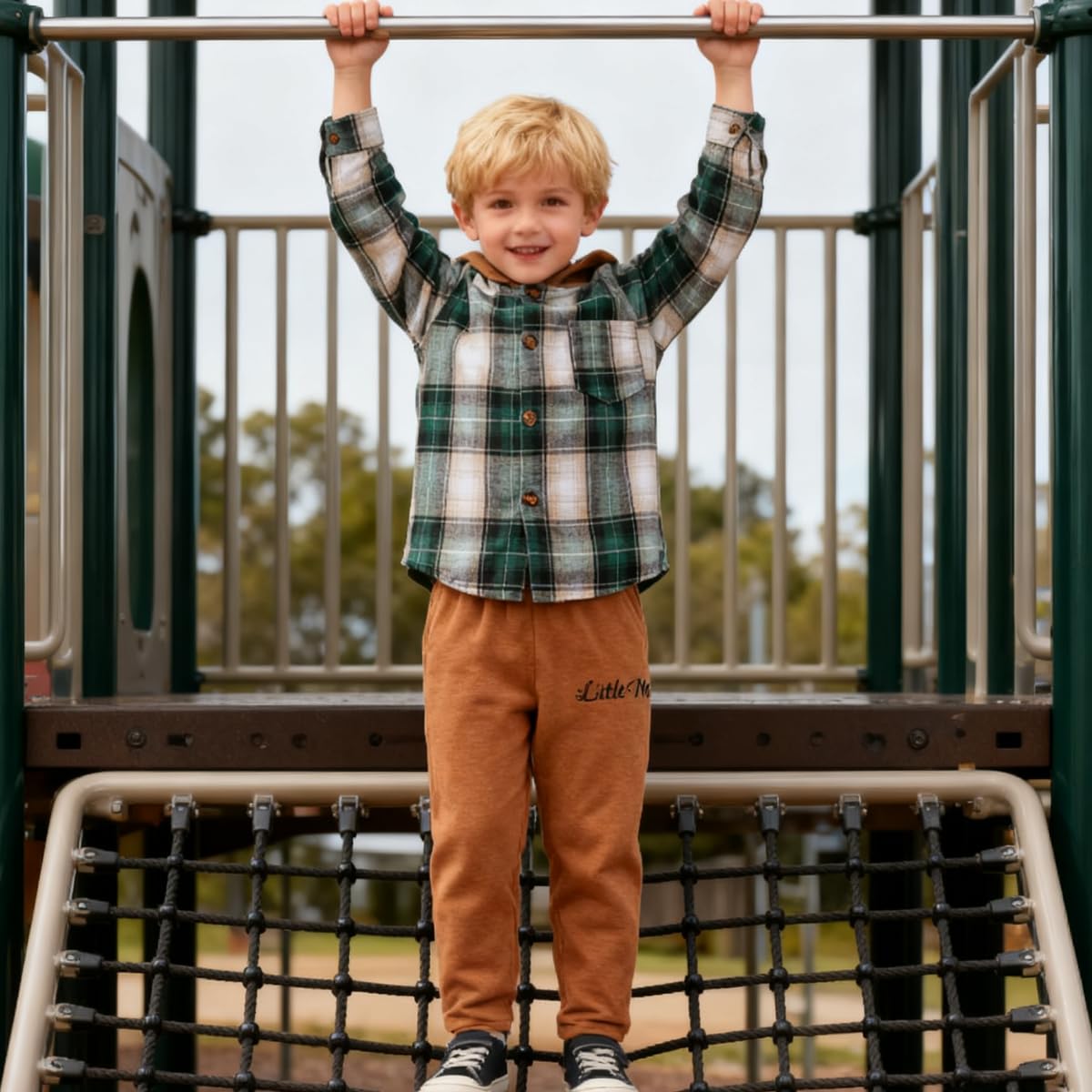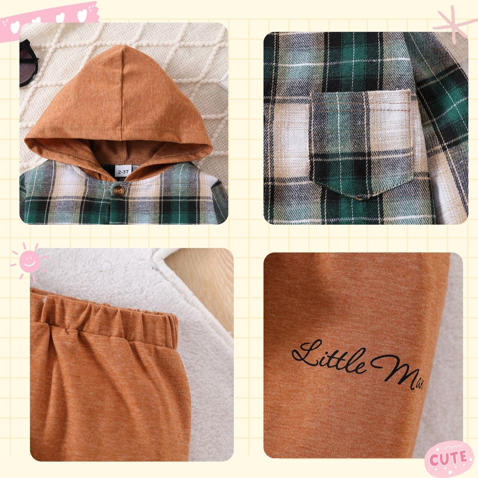 【Cute & Stylish Design】: Toddler Baby boy clothes set with classical plaid colorblock hoodie with quality button closure design, elastic waistband sweatpants match with letter printed , easy to put on / off. Fashion style will have your little boy up on the latest trends and he will get a lot of compliments.